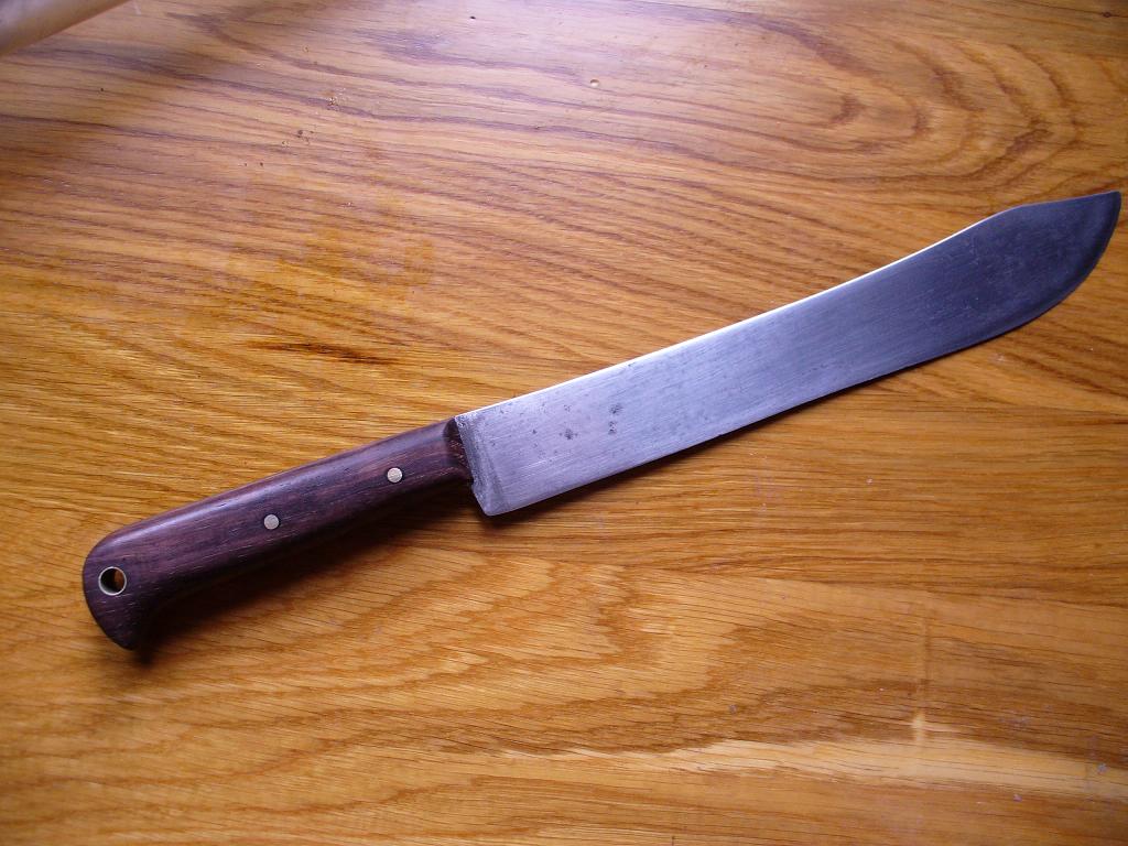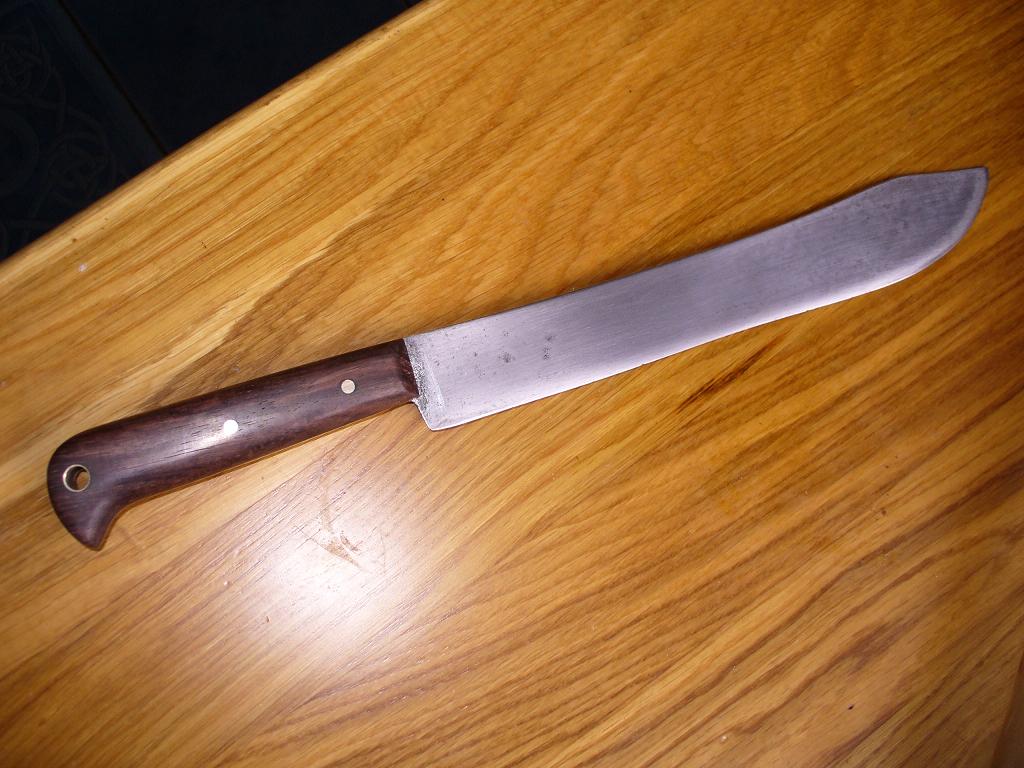 Попался в мои руки вот такой клинок, к которому нужно было изготовить и приладить рукоять, ну собственно вот что получилось, материал палисандр,вакуумная пропитка маслом для полока, да немножко латуни на заклепки и дыдочку.