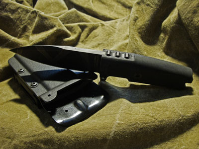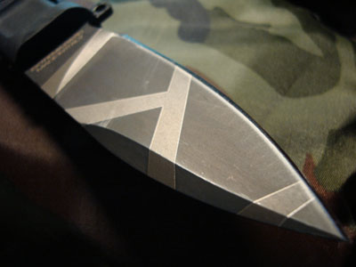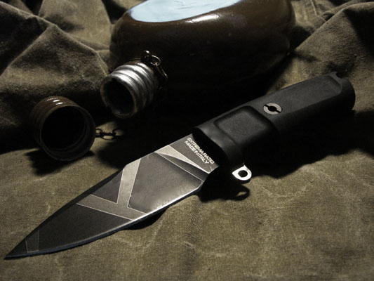 К нам в страну он попадает слегка кастрированным (убирают "гарду" - 5-6 мм выступы на границе рукояти и лезвия), но тем не менее остается и компактным и мощным и производящим впечатление "армейского" ножа.
