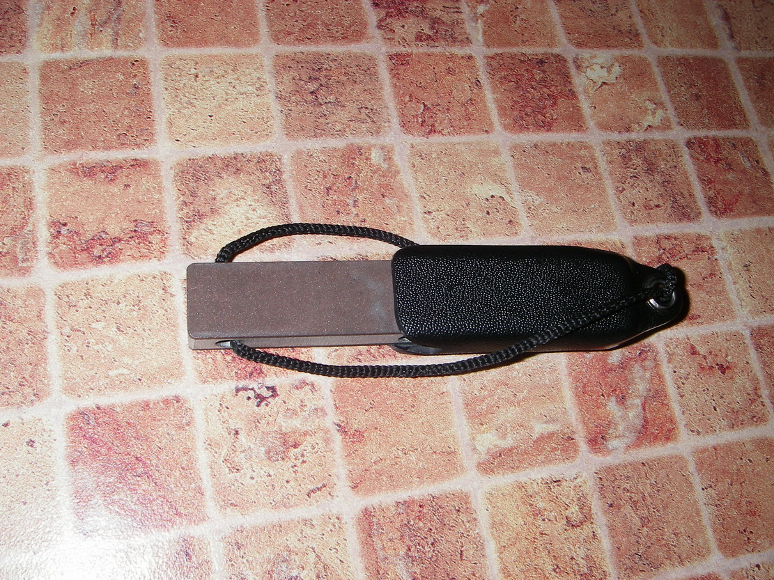 Да это-то как два пальца об асфальт... :) Узкий алмазный полукруглый брусок имплантировать в обух ножен. Так сначала я хотел Странник комплектовать, но там брусок получается точно не сменный и после заточки чумазый... А веса это почти и не прибавляет