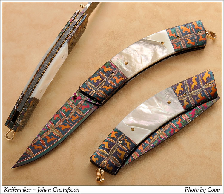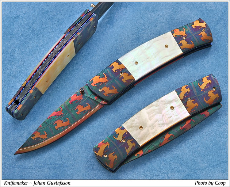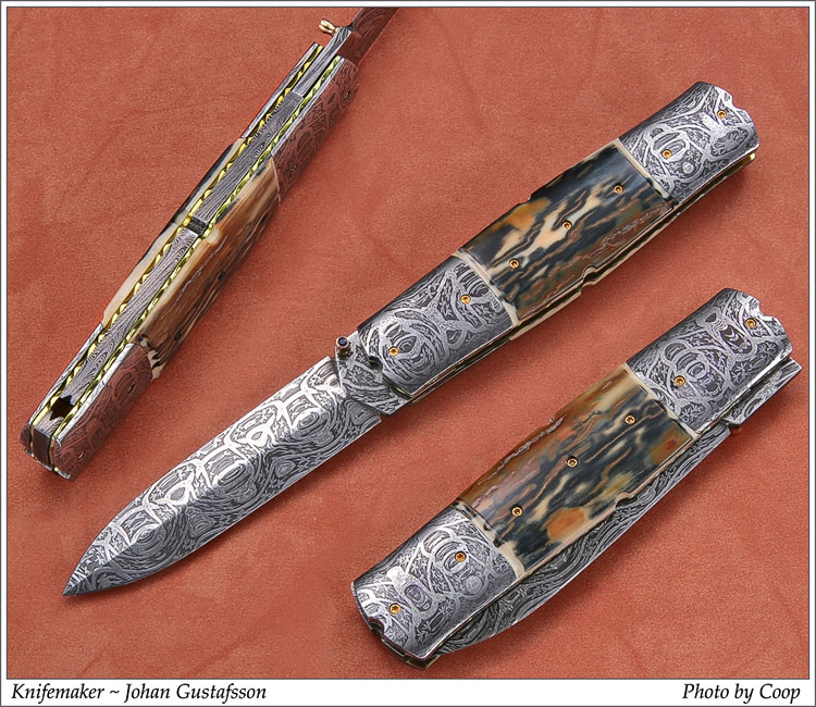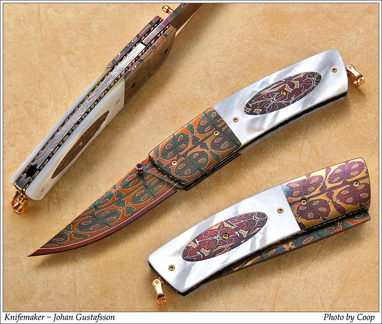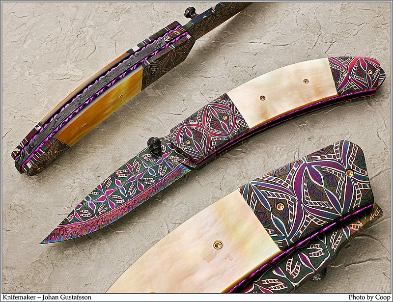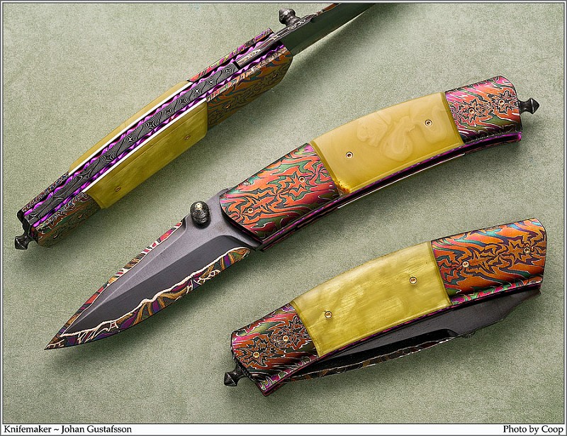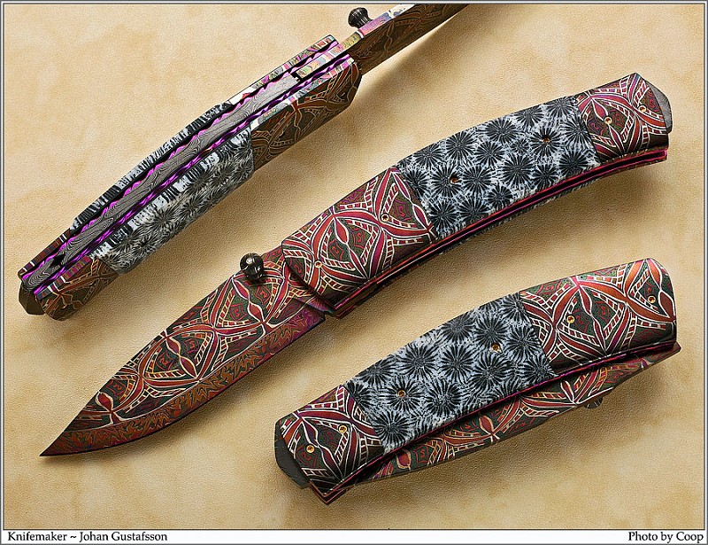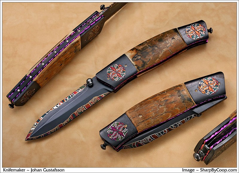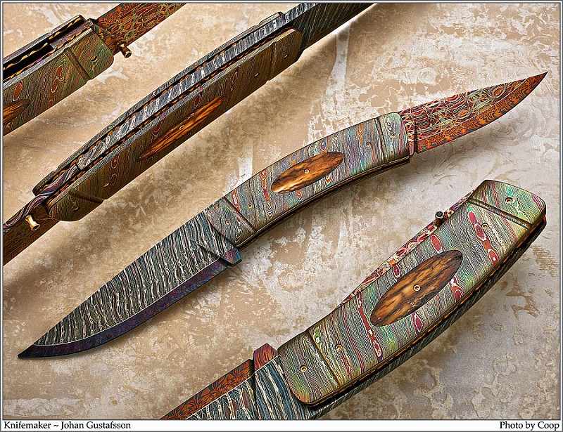 Представляю Вам удивительно красивые ножи из мазаичного дамаска мастера Johan Gustafsson.