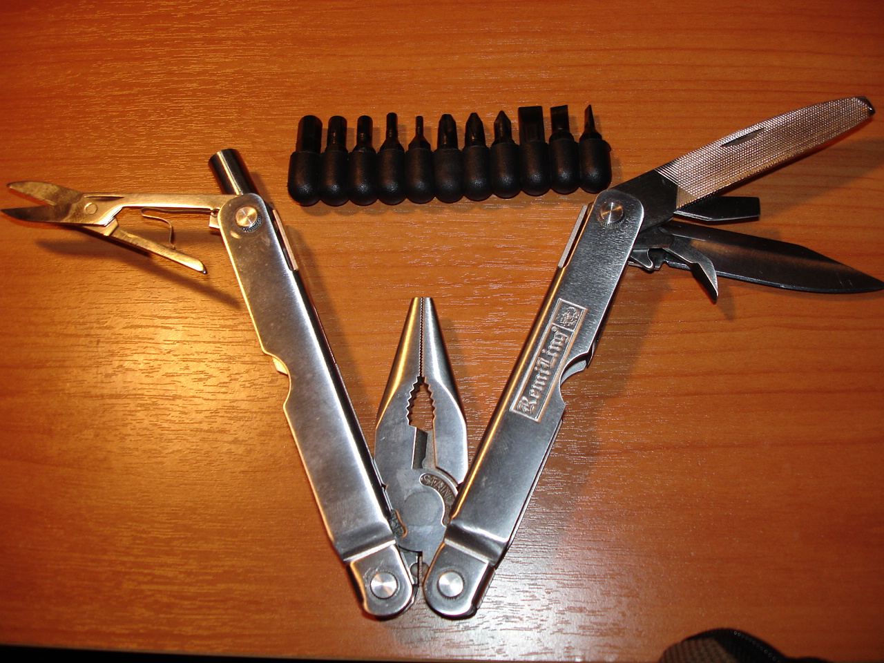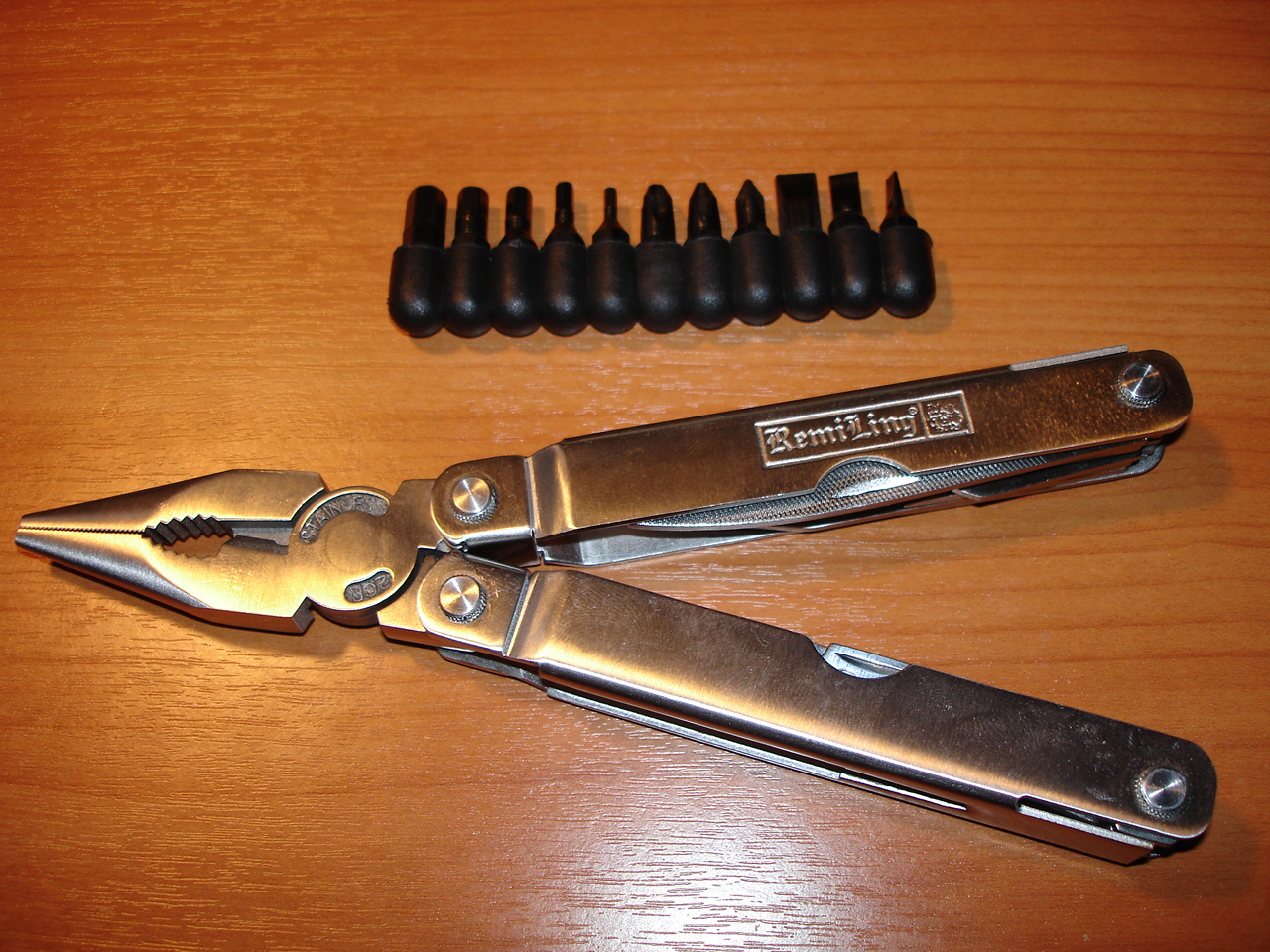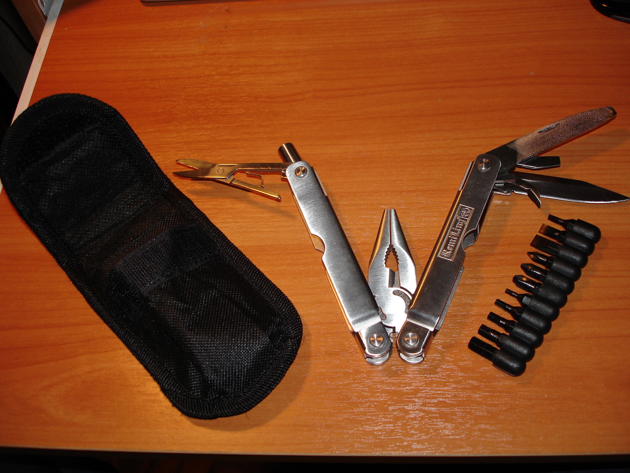Случилось немного попользоватся данным прибором,впечатления двойственные.Держатель для отверточных бит складывается как нажмешь чуть сильнее,плоскогубцы не пробовал, а нож оказался лучше чем я думал.После покупки я его сразу же переточил, а резал им пластик похожий на кабельканал по плотности,даже не замялась кромка,хотя если быть откровенным г оно иесть г,вообщем чуда не произошло.