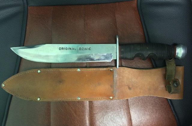Да чего тут прикалывться? Судя по ножнам, нож не из новодельных, подделками в те времена китаёзы ещё не занимались. То, что конструкция ножа соответствует надписи: "Боуи" - не вызывает ни каких сомнений. Про цифры сказать ни чего не могу, возможно - порядковый номер в ограниченной партии.