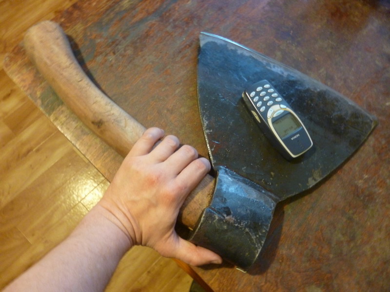 кладёшь топор на край стола, а камень в руку....как на картинке примерно. :wink:
