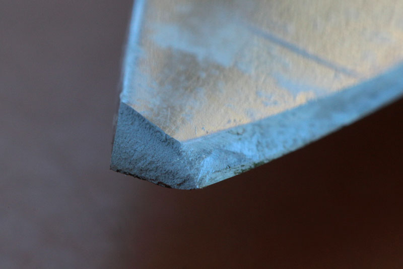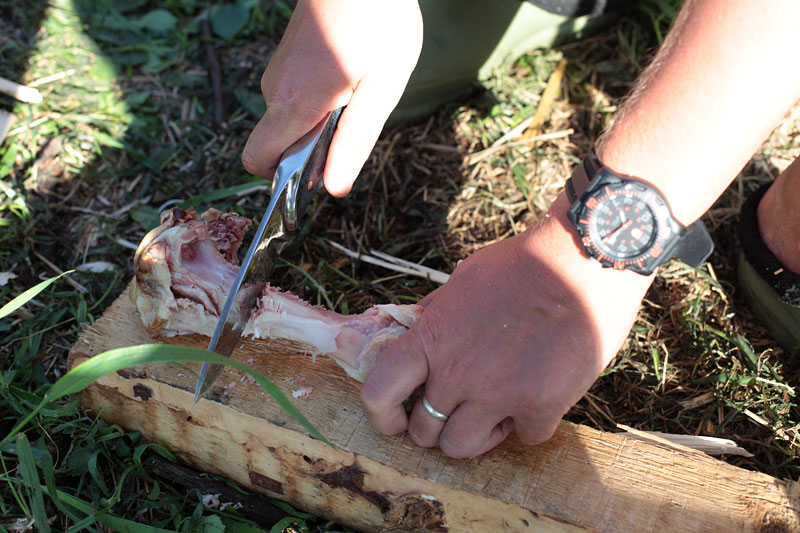 Рез мороженого мяса отпал за неимением такового. Строгание гвоздя банально забыли. Рубка мороженых веток отпала в связи с климатическими препонами (на улице было 26 градусов в тени). Мойка в посудомоечной машине перестала быть мне интересной, т.к. поведение микарты в ней я уже знаю – вымывается верхний слой эпоксидки, рукоять становится слегка шершавой. Но это после множества моек.