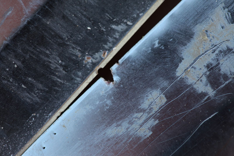 Итак нож ББ – 3 балла. Спорный дизайн, на левой голомени слегка заметные следы мехобработки (?) – небольшие изъязвления и кратеры. Микарта обработана хорошо, расслоений слоев нет. Спуски сведены с погрешностями, что дало утолщение подводов и кривизну РК у острия.