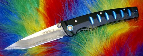 Mcusta я захотел сразу, как увидел в первый раз несколько лет назад. Долго ходил, присматривался к разным моделям. И тут в Солдате появился ассортимент Mcusta по весьма привлекательным ценам, это ускорило процесс. В итоге выбор пал на модель MC-41C Katana Black&Blue. Хотел классическую модель с дамасскими обкладками, но остановила непропорционально большая (ИМХО)рукоять. А этот нож мне кажется очень гармоничным, плюс оригинальный строй клинка.