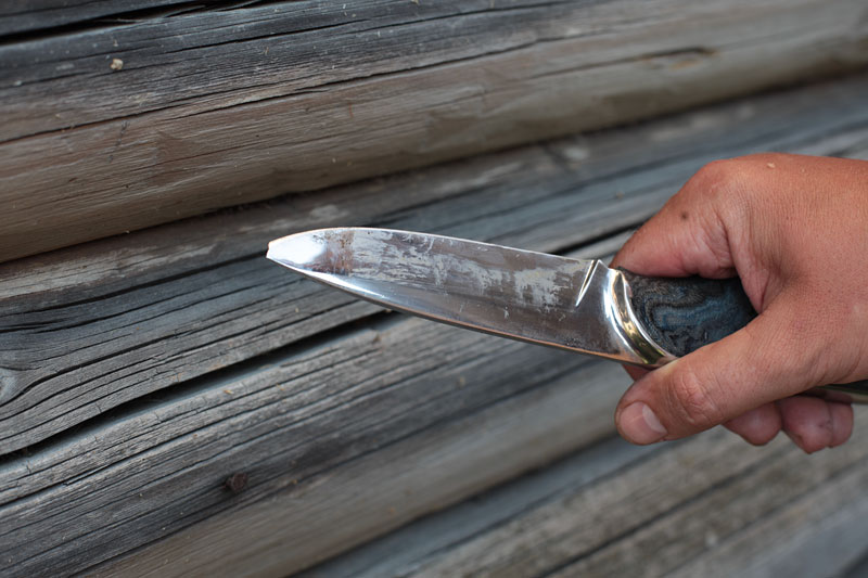 Рез мороженого мяса отпал за неимением такового. Строгание гвоздя банально забыли. Рубка мороженых веток отпала в связи с климатическими препонами (на улице было 26 градусов в тени). Мойка в посудомоечной машине перестала быть мне интересной, т.к. поведение микарты в ней я уже знаю – вымывается верхний слой эпоксидки, рукоять становится слегка шершавой. Но это после множества моек.