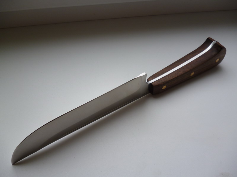 P.S. Кончик клинка затуплен во избежание травмирования рук супругой, что к сожалению имело место быть на других ножах. :(