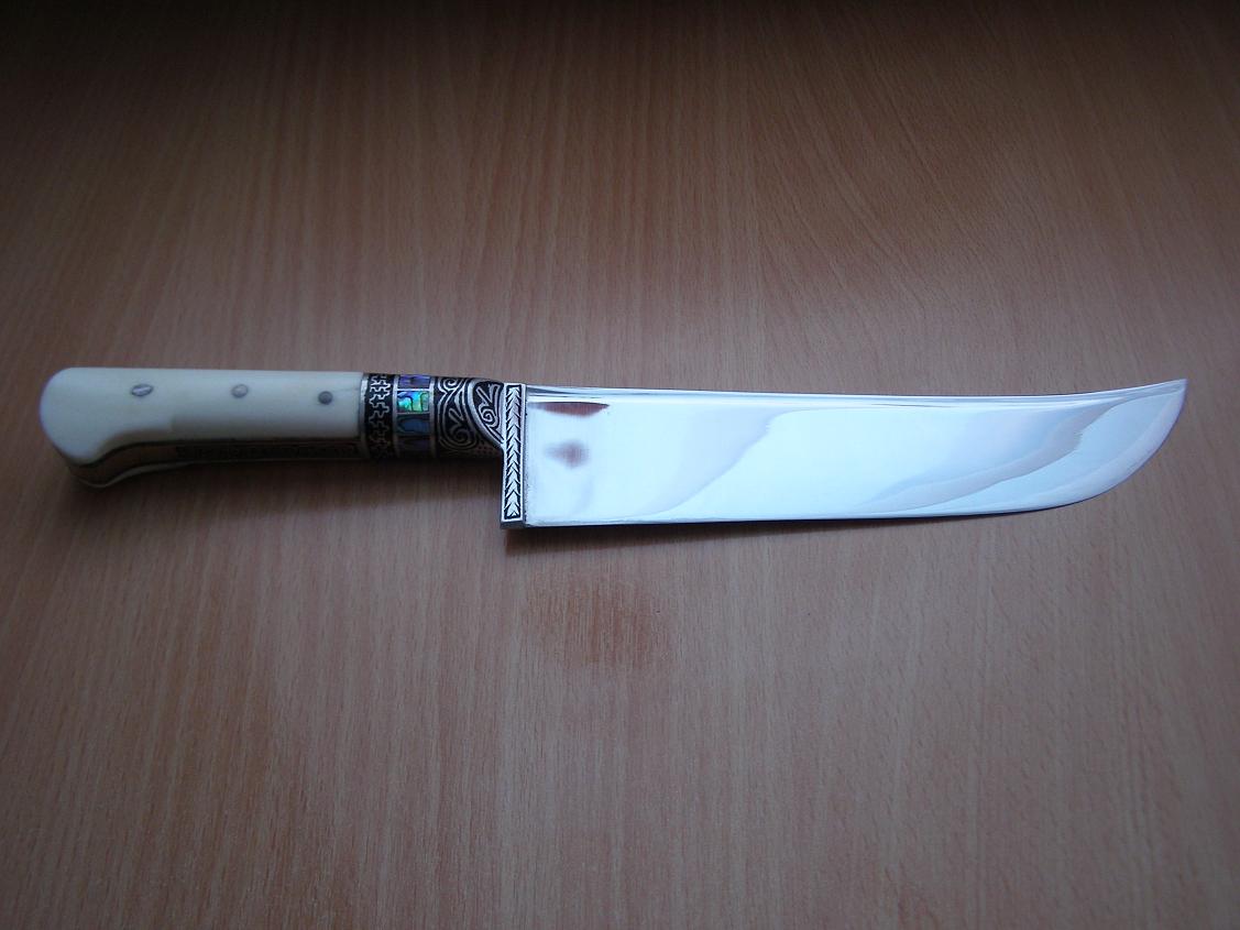 Дмитрий, Вы просили фото МОЕГО ножа (их есть у меня) а не пчака. Это не казуистика, это так, к слову. Вот пчак от усто Абдувахоба который я заказывал по своим размерам через Бахритдина и ждал полгода.