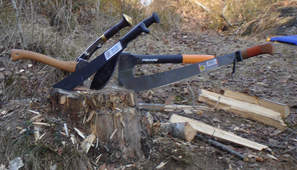 Мы в прошлом году ездили с клубом на пикник,пробовали рубить разными кукрями,мачете,рубить конечно они могут,но имхо до топора им далеко.