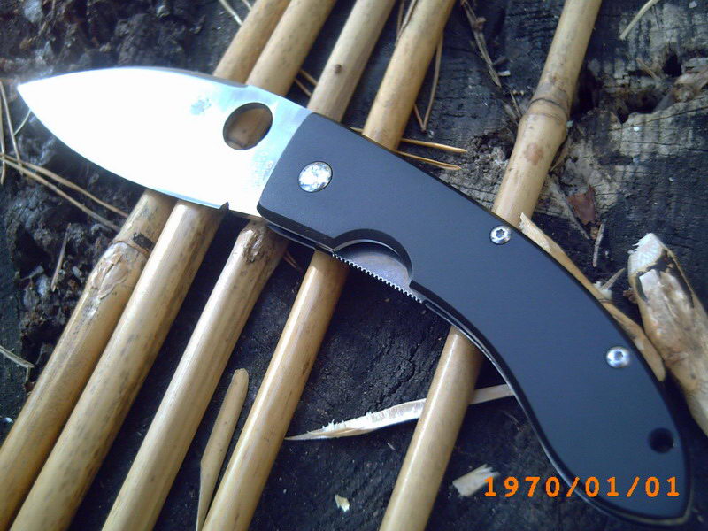 Нож оказался таким как я, его себе и представлял. Размеры, вес, цвет, тактильные ощущения, механизм, всё, Всё, ВСЁ, было так как я себе и представлял. Нож сразу поселился на кармане, Вояджер от Колд Стил отправился в запас. Как только я начал пользоваться Чайной, так сразу стали бросаться в глаза все её недостатки. Нож на кармане штанов компактен и невесом, но клипса не достаточно жёсткая, а накладки рукоятки излишне скользкие, поэтому нож несколько раз чуть не потерял. К примеру, модель Хантер от КаБар Дизайна Боба Дозьера имеет более жёсткую клипсу и более шершавые накладки на рукоятке. Кончик клипсы Чайны загнут вниз к рукоятке, но недостаточно, поэтому он иногда цепляет одежду, которая одета поверх штанов, например футболку на выпуск или подклад куртки. Несколько раз так выдёргивал нож из кармана штанов, едва не потерял. К примеру, Вояджер от Колд Стил имеет клипсу с более сильно загнутым к рукояти кончиком. Клипса у Чайны изначально стоит на конце рукояти, нож достаточно глубоко прячется в кармане, наружу остаётся торчать конец рукояти и клипса. Всё вроде бы хорошо, но такое расположение клипсы на ноже с линейным замком мне кажется не безопасным, поэтому обзаведясь подходящими отвёртками я переставил клипсу на начало рукояти и разочаровался… Наружу стало торчать так много ножа, что я даже не видел смысла прятать его в карман. После нескольких прогулок переставил клипсу на место. Однорукое открывание без претензий, всё естественно, не пришлось даже учиться. Линейный замок тоже на высоте, нож легко открывается и закрывается одной рукой, рабочей правой и даже менее рабочей левой. Ход плавный, фиксация чёткая – отлично. Форма клинка, да и всего ножа разочаровала. Внешне красиво, но малофункционально. Рукоять слишком узкая, тонкая и скользкая. Форма слишком изогнутая вниз, как у керамбита. Клинок слишком широк, схождение обуха с рк имеет большой угол. Обратным хватом рк от себя я ему работу не нашёл. Обратным хватом рк на себя можно было бы кожу на столе раскраивать, но излишняя изогнутость к держащей руке всё портит. Прямым хватом рк вверх удобно верёвки резать, больше ничего делать неудобно. Прямым хватом рк вниз можно резать всё что угодно, но изогнутость в сторону реза в большинстве случаев мешает, а не помогает. Строгать деревяхи от себя удобно, но чистить корнеплоды не получается. Кончик настолько массивный, что ковырять им не получается. Например проковырять отверстие в кожаном ремне ещё как то получается, а проколоть отверстие в тюбике клея уже не получается, клинок просто туда не лезет, не помещается, упирается обухом и рк в края горловины. Фальшлезвие считаю лишним элементом в клинке Чайны, нож не для укола, он скорее для пореза. Дулька сделана грамотно, чётко между пяткой и рк, а не на рк как в последнее время многие изготовители делают. Пятка кстати тоже грамотная, большая массивная, но не крадёт за зря длину клинка и не вылезает на отверстие для однорукого открывание, так что граница пятка – спуски не проходит посередине отверстия как у модели Милитари от той же фирмы Спайдерко. Клинок из запредельно твёрдой ZDP-189 я не вкурил. Каково-то феноменального реза я не почувствовал не с фабричной заточкой, не после того как сам стал нож править. Правил я его, кстати очень мелкозернистым бруском от Спайдерко. Чего то запредельно твёрдого