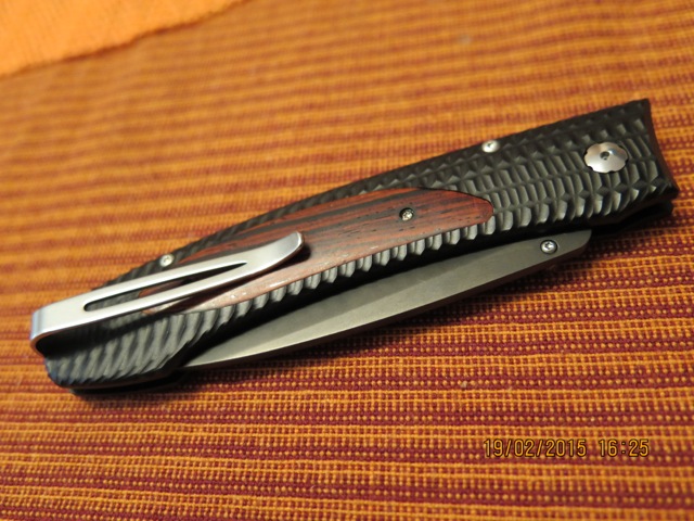 Клинок 87мм, по РК 76мм, спуски вогнутые, сведение 0,3мм, толщина в обухе 2,5мм, заточка 25 град на одну сторону.