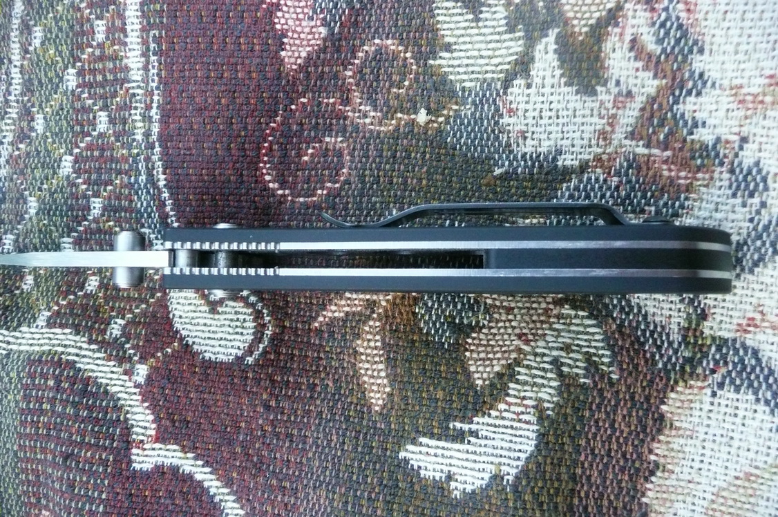 Клинок обладает сталью 154 СМ, что можно о ней сказать. Тяжело нож я не пользовал, если не стругать деревья заточку держит достаточно долго. Шпинь достаточно удобен за одежду не цеплялся не разу хотя в закрытом состоянии прилегает прямо к рукояти. Открываю я этот нож инерционно с помощью аксиса и его в принципе не пользую.