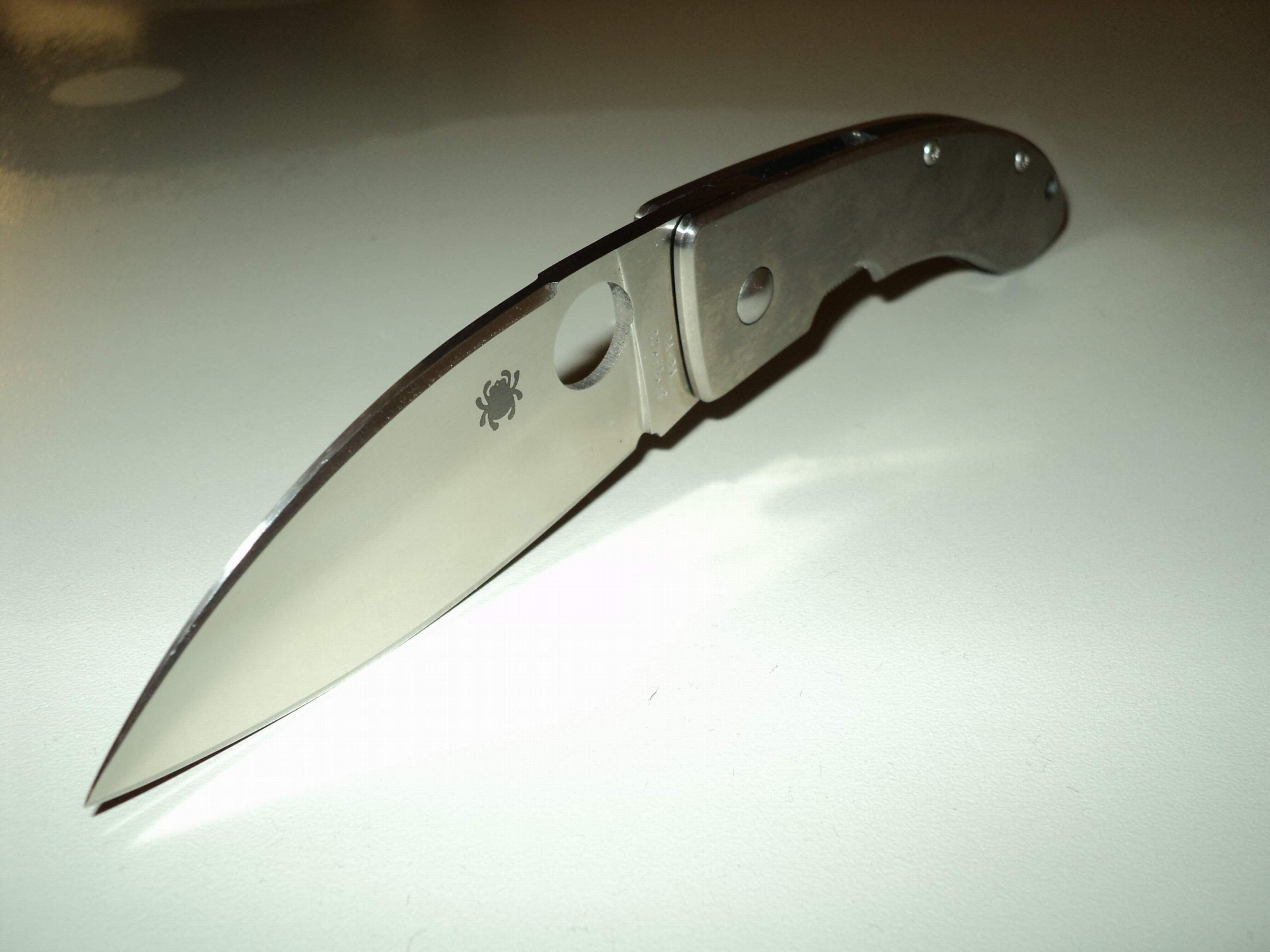 К делу! В руки неожиданно и сам попал странный ножик Spyderco Lum Chinese Folder (отдельное спасибо clust ). К такой форме клинка и рукояти я, честно говоря, был не готов. Не привык, будучи «воспитан» на классике. Не хотел, ибо думал о Миле. Не планировал, ибо мечтал о Себе. Но взял. Вот просто подержал в руке, щелкнул пару раз и...взял. Мыслей не было. Китайская кухня. Китайский гипноз. От него вообще попахивает китайщиной. ( не подумайте плохого) Формы, размеры, титановые накладки, клеймо мастера, коварство затаившейся кобры...Загадка для меня не разгадана до сих пор. В нём присутствуют нормальный адекватный размер, весьма удобный хват, не смотря на тонкую рукоять, полное отсутствие люфтов. То есть вполне рабочий, добротный нож. Причём, без истеричности, красивый. Но...