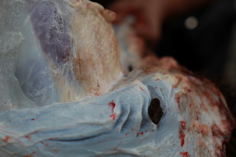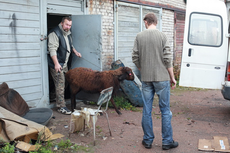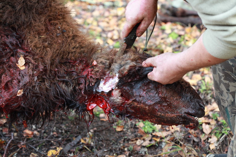 Забили животное классическим способом — перерезав горло. Мучений животное практически не испытало, даже не вскрикнуло. Нож прошел как горячий нож сквозь масло, но если был чуток подлиннее, то было бы удобнее.