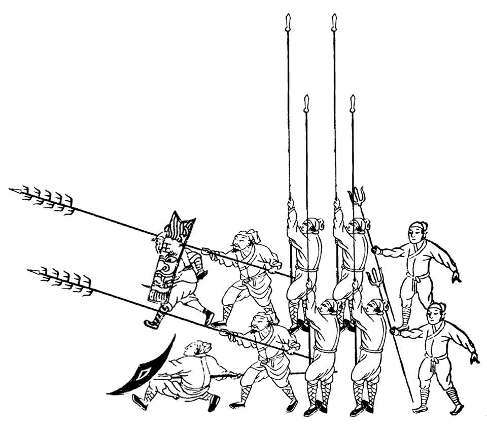 Семизубый меч. Одна из основных версий относит его появление к IV в. до н.э. Согласно анализу меч был изготовлен в царстве Пэкче или Силла (территория современной Кореи). Общая длина - 74,9 см, материал - железо. На клинке имеются местами нечитаемые надписи: "На 16-ю луну 11-го месяцаб 4 года эры Таива меч был выкован из стали в 100 раз крепче обычной. Используя меч поразишь 100 врагов. Для достойного властителя. Сделал..." и " Никогда прежде не было такого клинка. Принц царства Пэкче, который живет звуками августа, сделал этот меч для царя Ва с надеждой что он прослужит многим поколениям"