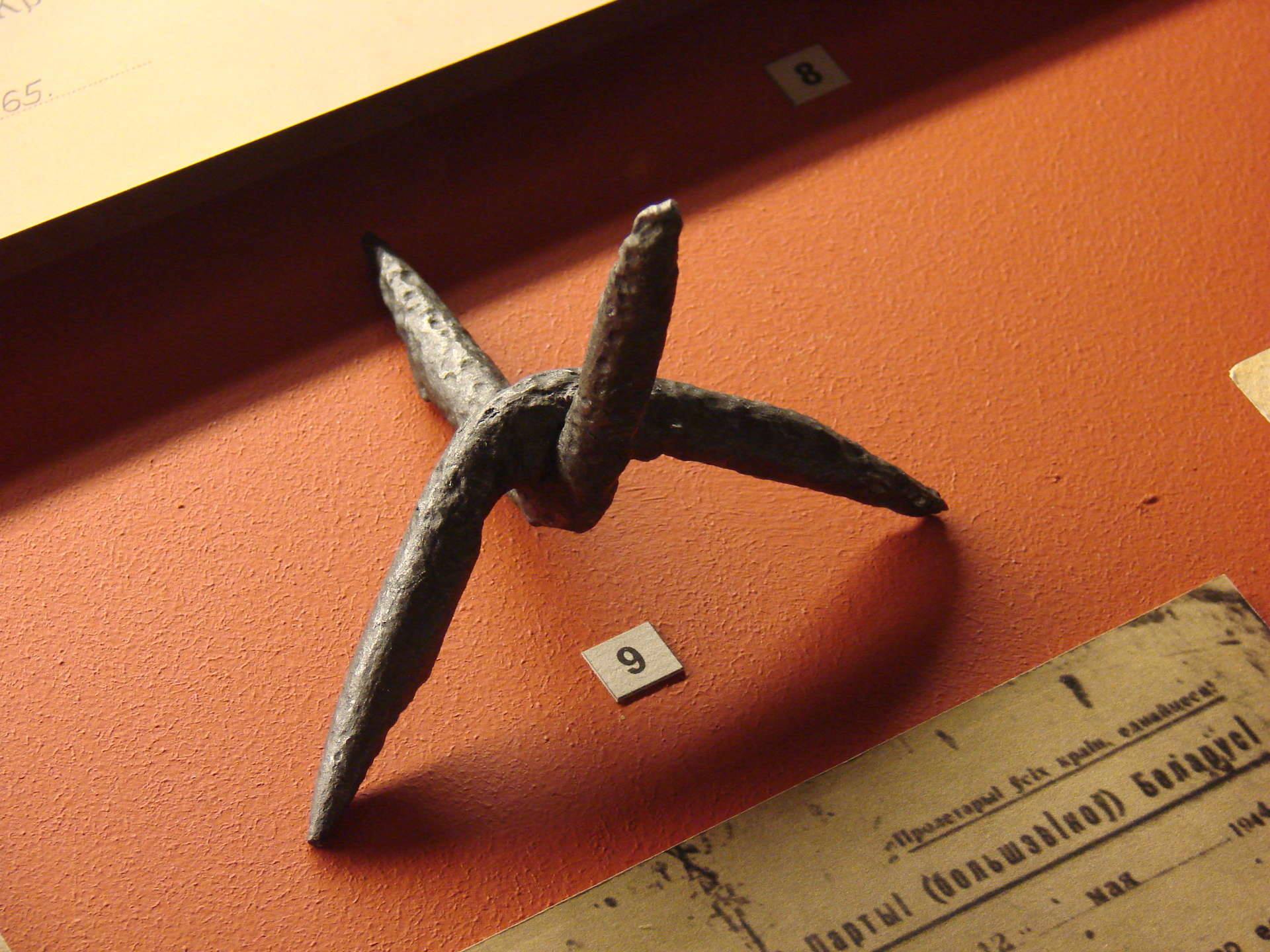 Читал про него раньше. Есть даже специальная обувь с металлическими вставками, прочём современная для безопасного преодоления подобных противопехотных заграждений.