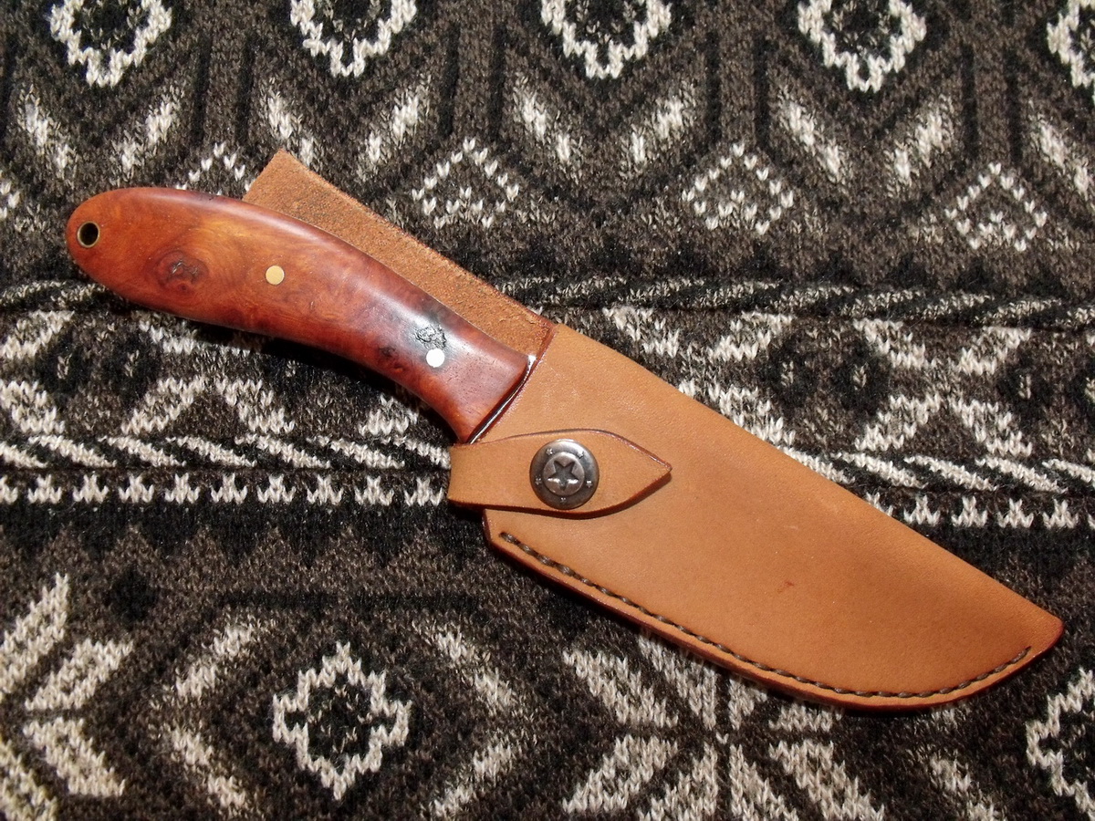 Дык Грохман (или читается правильно Громан) и делает все свои ножи, или почти все, по индейским мотивам. У этого еще нос острый. а так обычно скругленный, чтобы шкурку ненароком не прорезать.