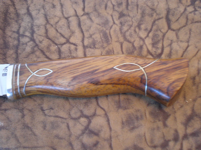 Рукоять - американский орех (спасибо Саше Вольфу), мельхиор, тоненькая фибра от сварочной маски, мельхиоровая всечка (прошу особо не пинать, косяки по всечке сам вижу, но первая проба, тесезеть), масло для полков, спиртовой шеллак.