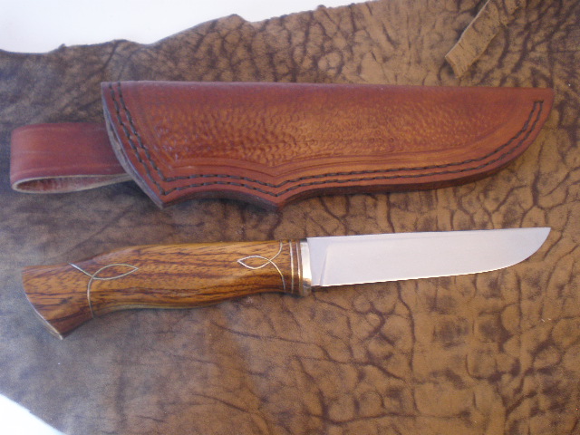 Ножны кожа 4 мм, скромное тиснение, вощеная нить, перевязан каждый стежок, бесцветный обувный воск "Киви"