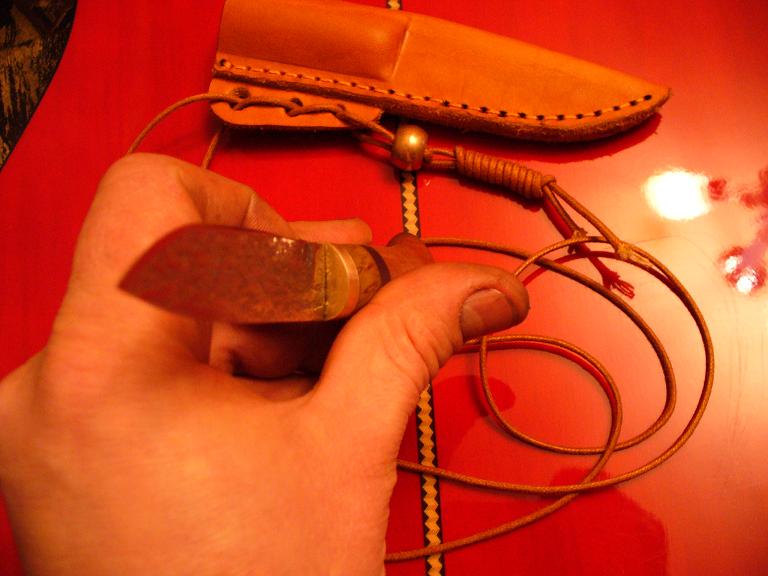 Приятный ножик, подвес не обычный, симпатичный, единственный маленький тубарет, рукоять маловата, а цену народ назначит, аукцион же вроде.