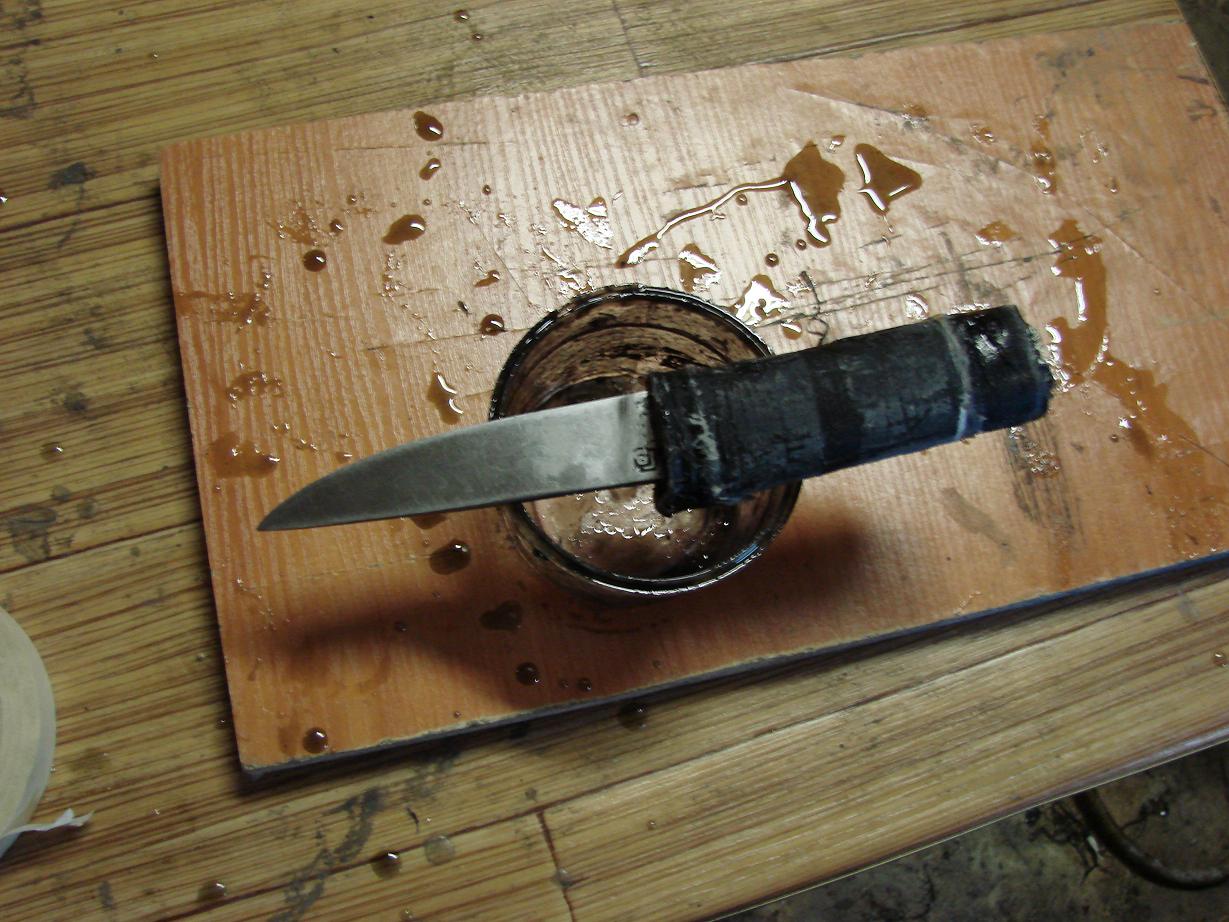 На сто грамм смолы 0,5грамма отвердителя,когда зажал в тиски чуть подогрел феном(чтобы ускорить процес)Пока пил пиво она высохла :wink:
