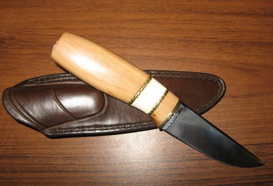 Горб на спинке клинка сточите ,он Вам мешаться только будет в полях.В какую нибудь автомастерскую напроситесь ,и сами горб на электроточиле и смахните .В этом случае улучшится общий контур ножа,превратятся в одну плавную дугу обе спинки и клинка и рукояти.Дизигн ,так сказать ,отработаете .И будет ножу щасье ! :mrgreen:
