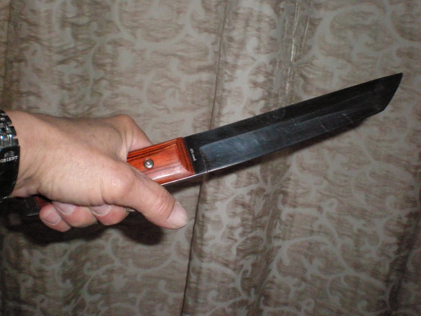 Именно для него я сшил свои первые ножны. Пару раз брал в лес как мачете. Теперь лежит без дела