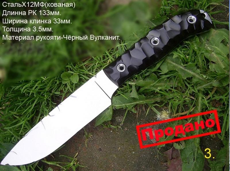 .... х12мф, кованная, твердость 59-60 (стекло царапает), общая длина 195 мм, клинок 4,1х31,5х 95 мм (до начала рукояти), длина рк 94 мм, рукоять 100 мм, традиционно - из экзотическо-ископаемой породы текстолита :D , латунь в пинах....