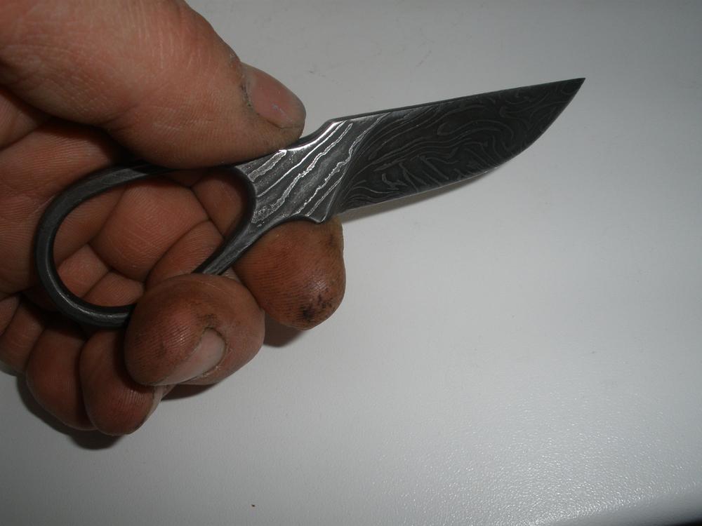 Да ладно отмазываться, мыло жалко? :mrgreen: По молодости работал в кузне, слесарем, токарем, за отпуск руки до чиста не отмывались. Это флуд. :roll: По существу, малышок вышел интересный как по дизайну, так и по рисунку дамаска.