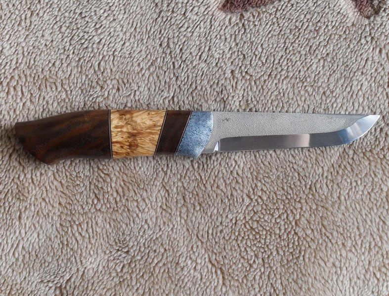 Слава, критикну слегонца, нечасто я это делаю: форма рукояти отличная, качество сборки, как всегда, на высоте. Но мне лично не нравится пестрота вставок на рукояти :( По мне бы просто кап клена без вставок и больстер мельхиоровый с 2-3 проставочками.