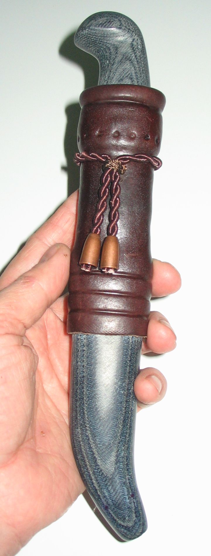 Я конечно предпочитаю дерево на рукояти. Но когда делал накладки для фултанга заинтересовался структурой микарты сильнее. И намотанные рукояти ДД сидели в голове. Вот и решил попробовать. Ну а для "непромокаемой" рукояти надо использовать только нержавейку. ))