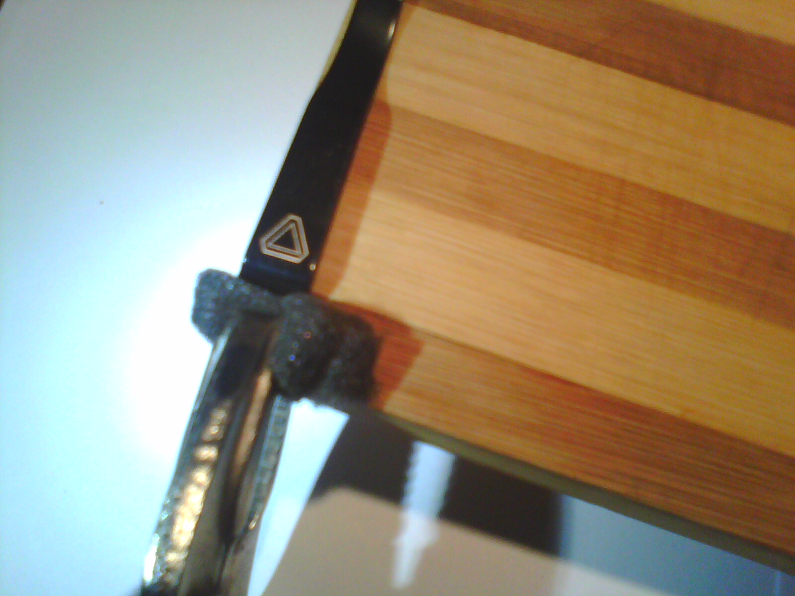 В итоге получилась очень удобная клипса, палец попадает прямо на ложбинку и тем самым клипсы как бы вообще нет (не наминает пальцы). И предугадывая вопрос о надежности удержания ножа на кармане, заверяю что надежность не упала, практика показала что осуществить телодвижения при которых нож вылетел бы из кармана - просто не реально, даже специально :) Все дело в том что клипса стала меньше ровно на 50% - тем самым ослабился эффект рычага, это дало единственный минус - труднее стало надевать на карман, нужно приложить чуть больше усилия. Но в месте с тем и увеличилась прижимная сила клипсы - короче держит хрен сорвешь :)