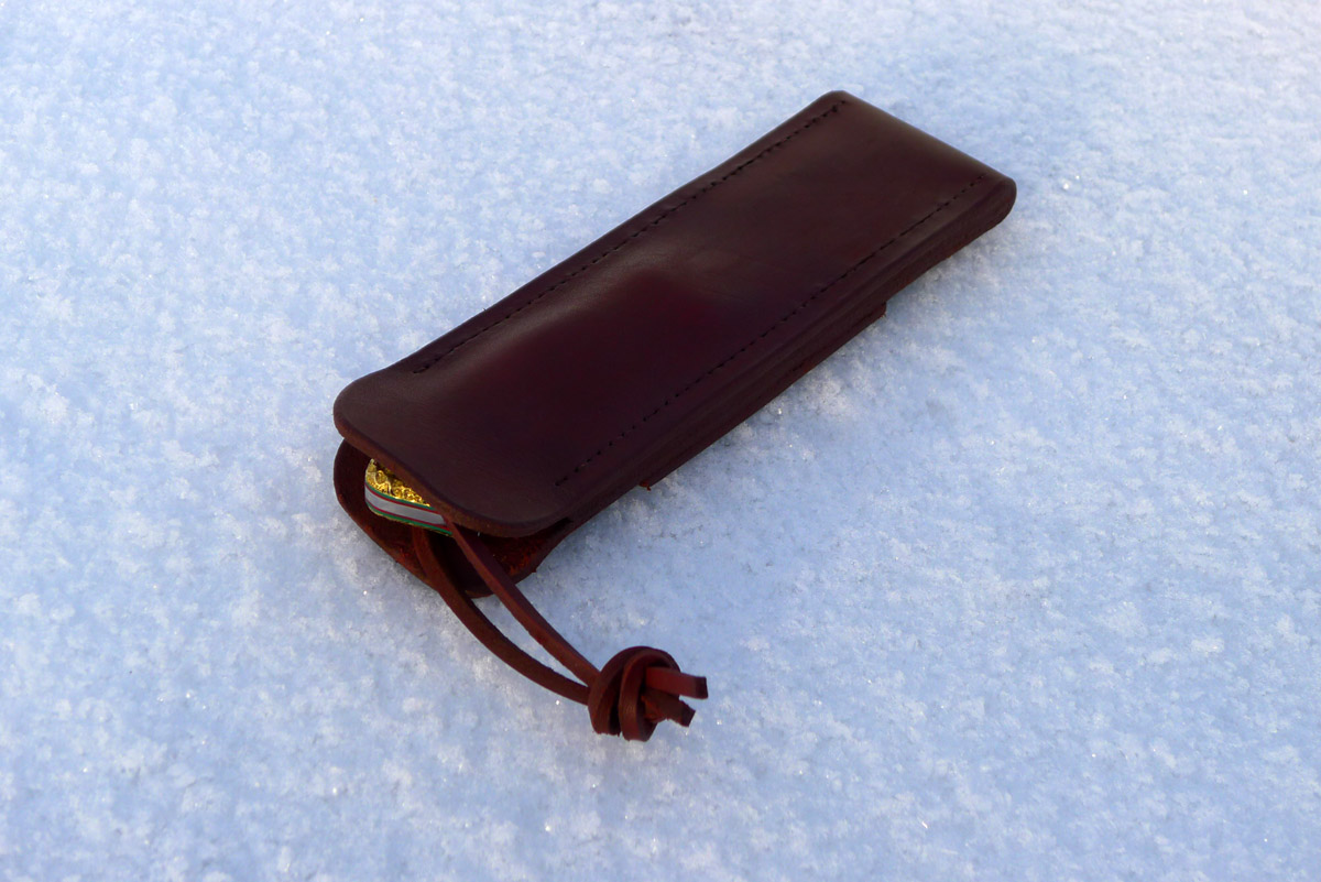 Саш, а можно про чехол поподробней? В чём его универсальность? В том, что он вешается на ремень и вертикально и горизонтально или ещё что-то? Чехол без клапана? Без вкладыша? Просто кожа? Делался конкретно под этот нож или в него любой нож можно спрятать? Как нож в чехле фиксируется, трением? Короче, фото не информативны, даёшь текст с пояснениями?