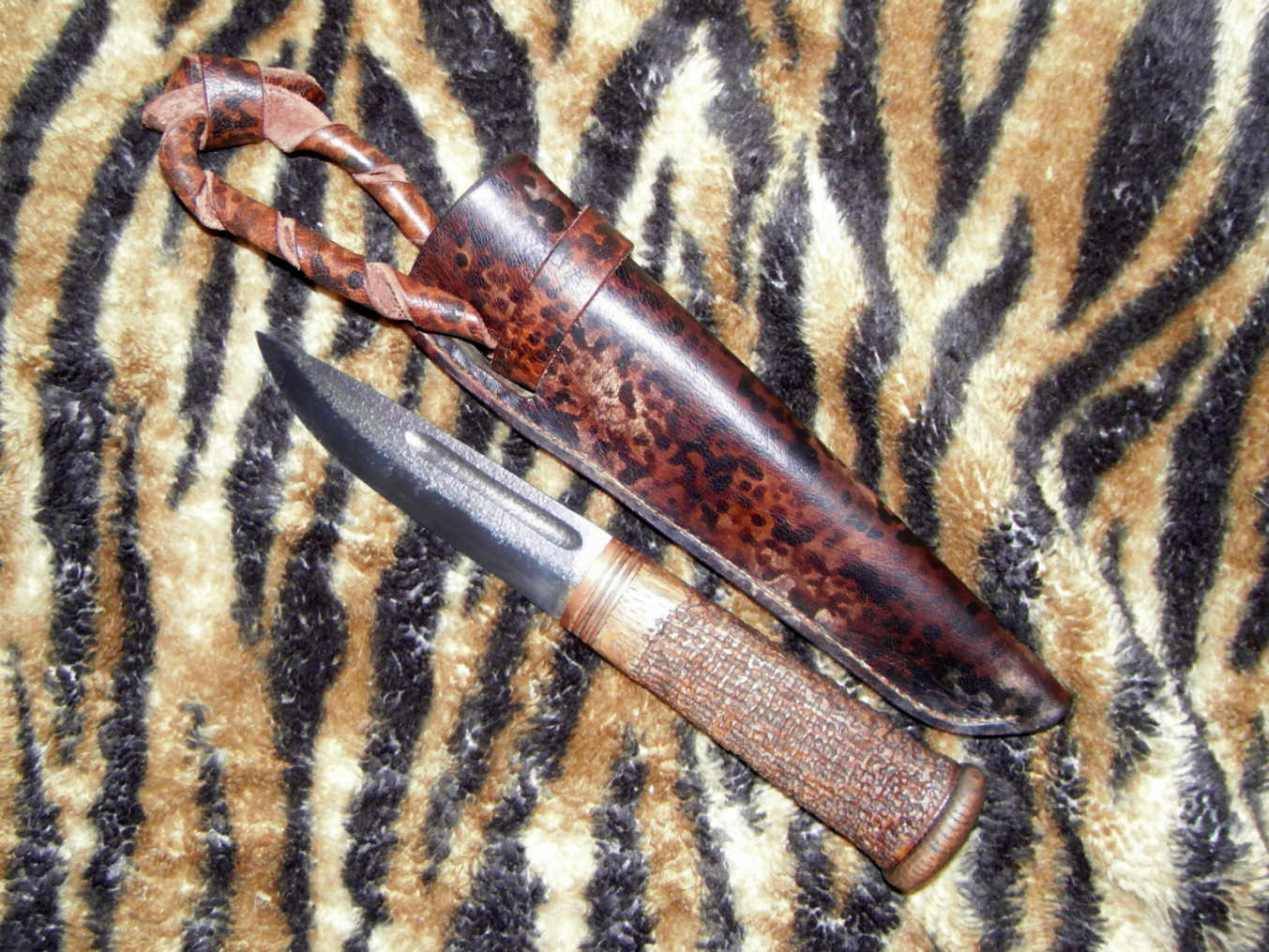 Хищно получилось. Выглядит как археологическая находка помытая и приведенная в порядок. От ножен двоякое ощущение... Но в целом весьма весьма.