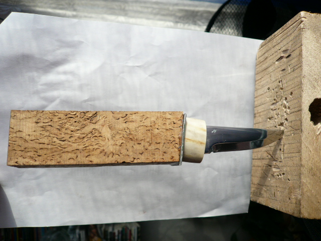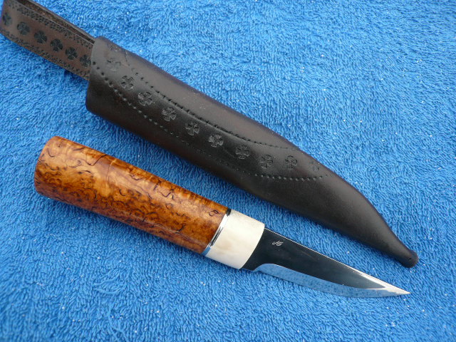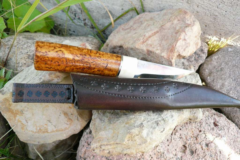 Нож хорош,ножны намана,но такой маленький кусочек рукояти,да еще и без выемки выступает что сразу понимаешь всю трудность извлечения если при влаге кожа подсела,зажав рукоять,или просто замерзшими пальцами.....Как-то уж совсем нож недоступен к пользованию получится.В теплой комнате двумя руками держа на коленках-даааа....но в условиях для которых северный тип ножа используется.......