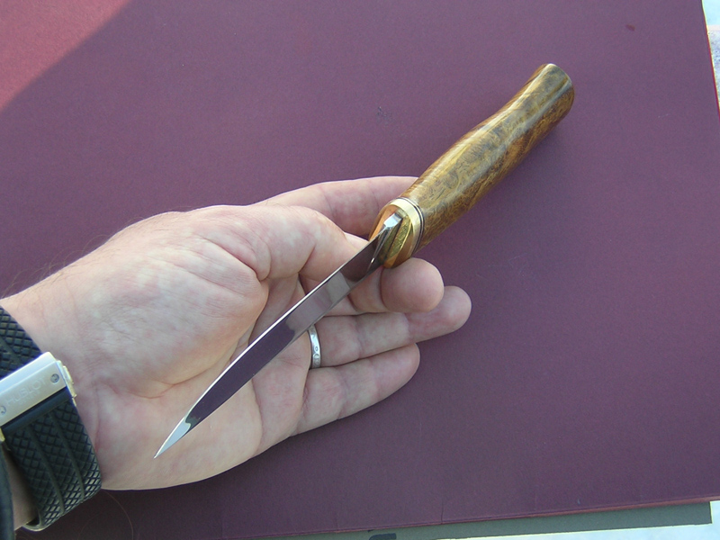 Симпатичный. А кончик клинка не слишком задрали? ИМХО, с прямым обухом лучше бы смотрелся.
