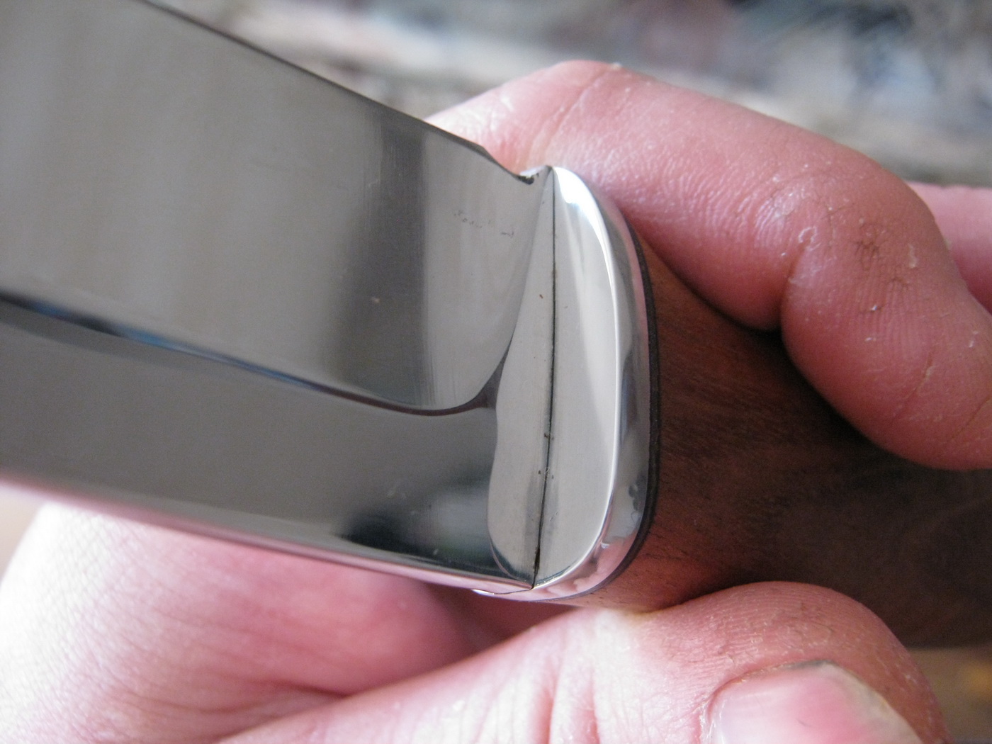Рукоять: нержа, кожа, дерево пропитано в льнянке. Толщина у больстера 17, у тыльной части 28.