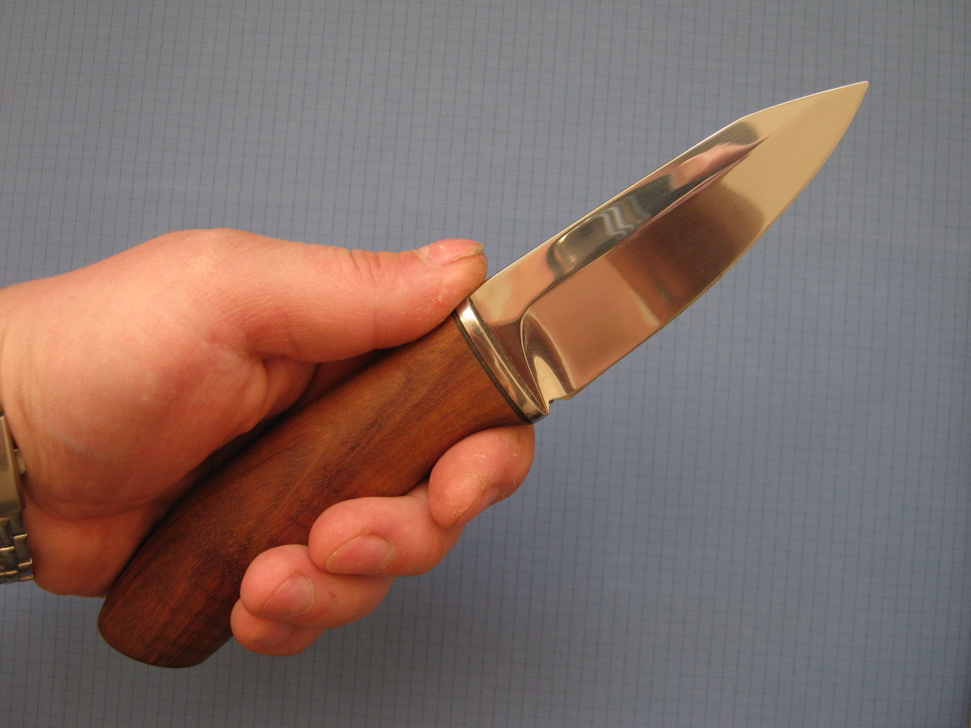 Сегодня держал нож в руках. Вживую неожиданно охеренный оказался :shock: Рукоять просто невероятно удобная. И, главное, деревяха перламутровая какая-то, на сувель березы текстурой смахивает, очень красивая. Что за дерево-не знаем...