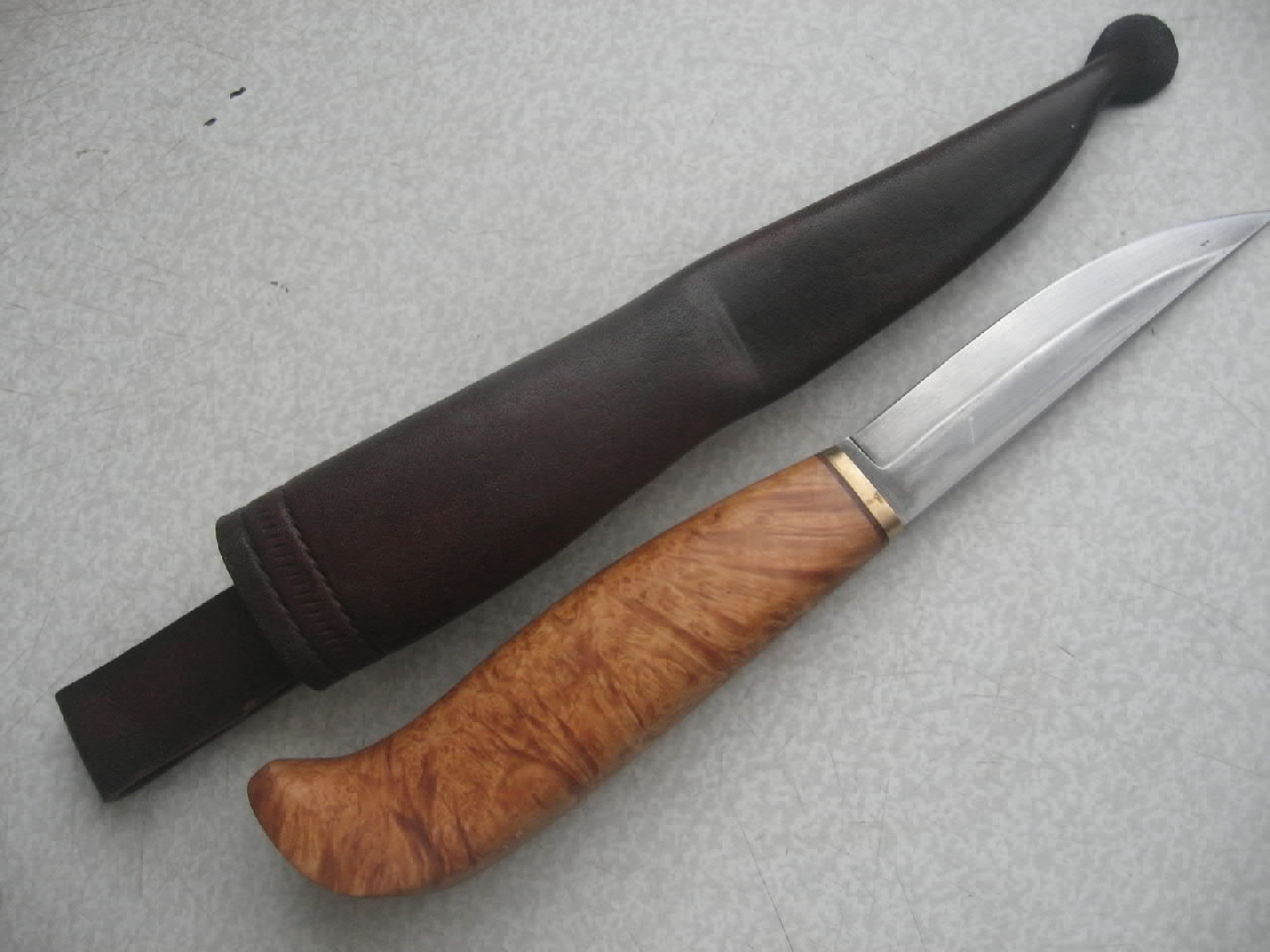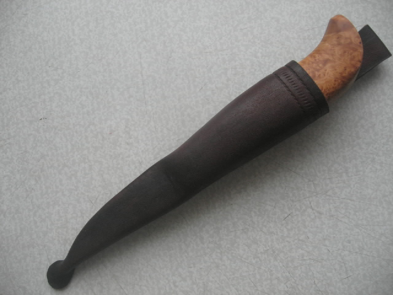 Добрый вечер. Первый нож с купленым клинком. Получился фин. Клинок полар 90#3.2#19. Чуток шлифанул. Рукоять бронза, береста, кап березы. 120#30#23 посередине. Масло для полка, данишь, карнауба. Монтаж всадной на дзержинскую эпоксидку, хвост 100мм.