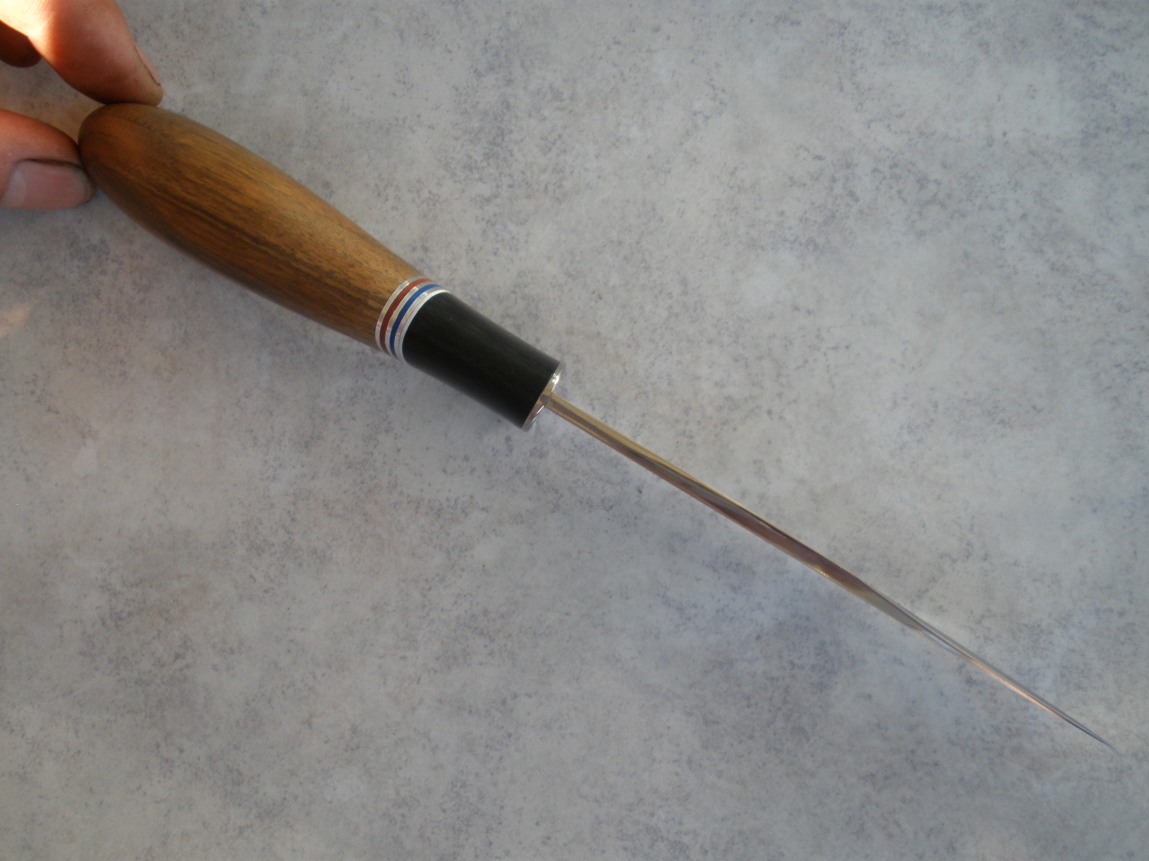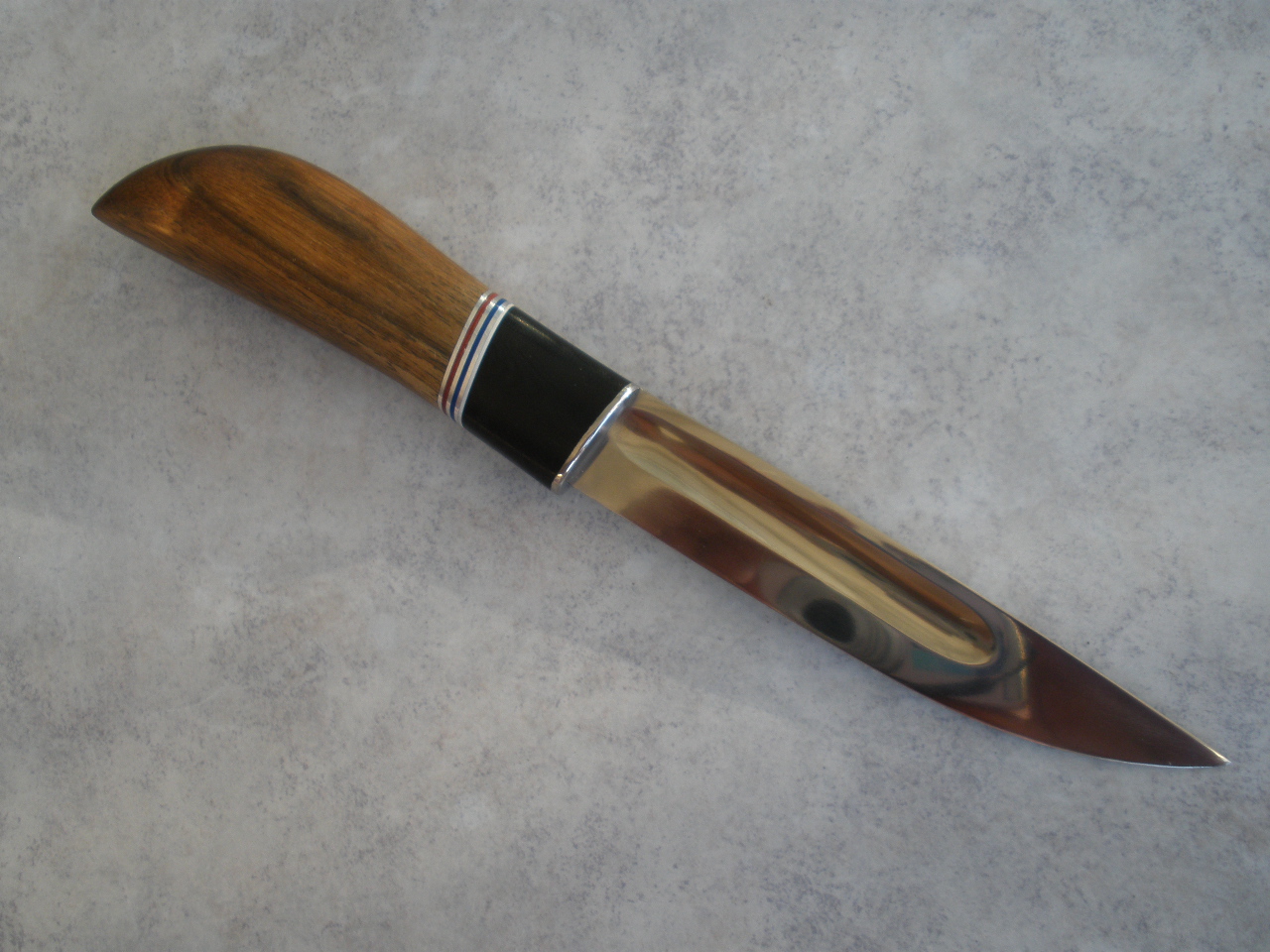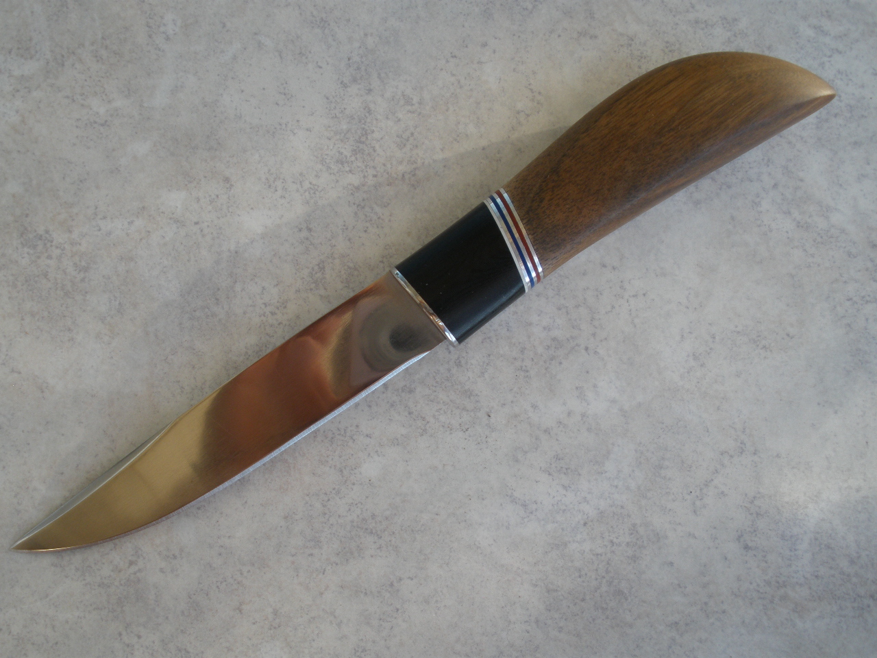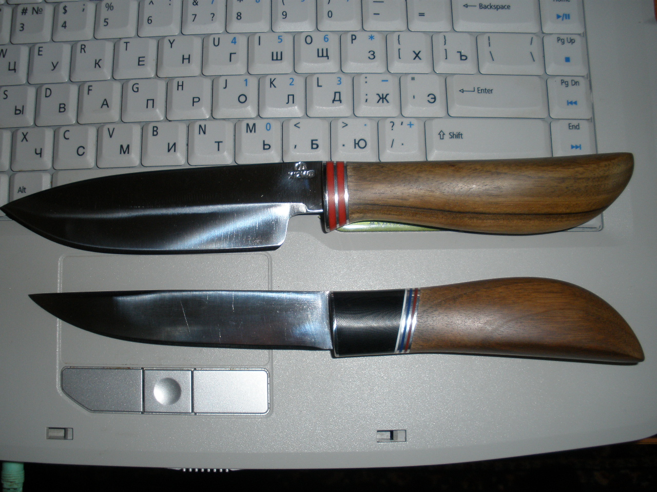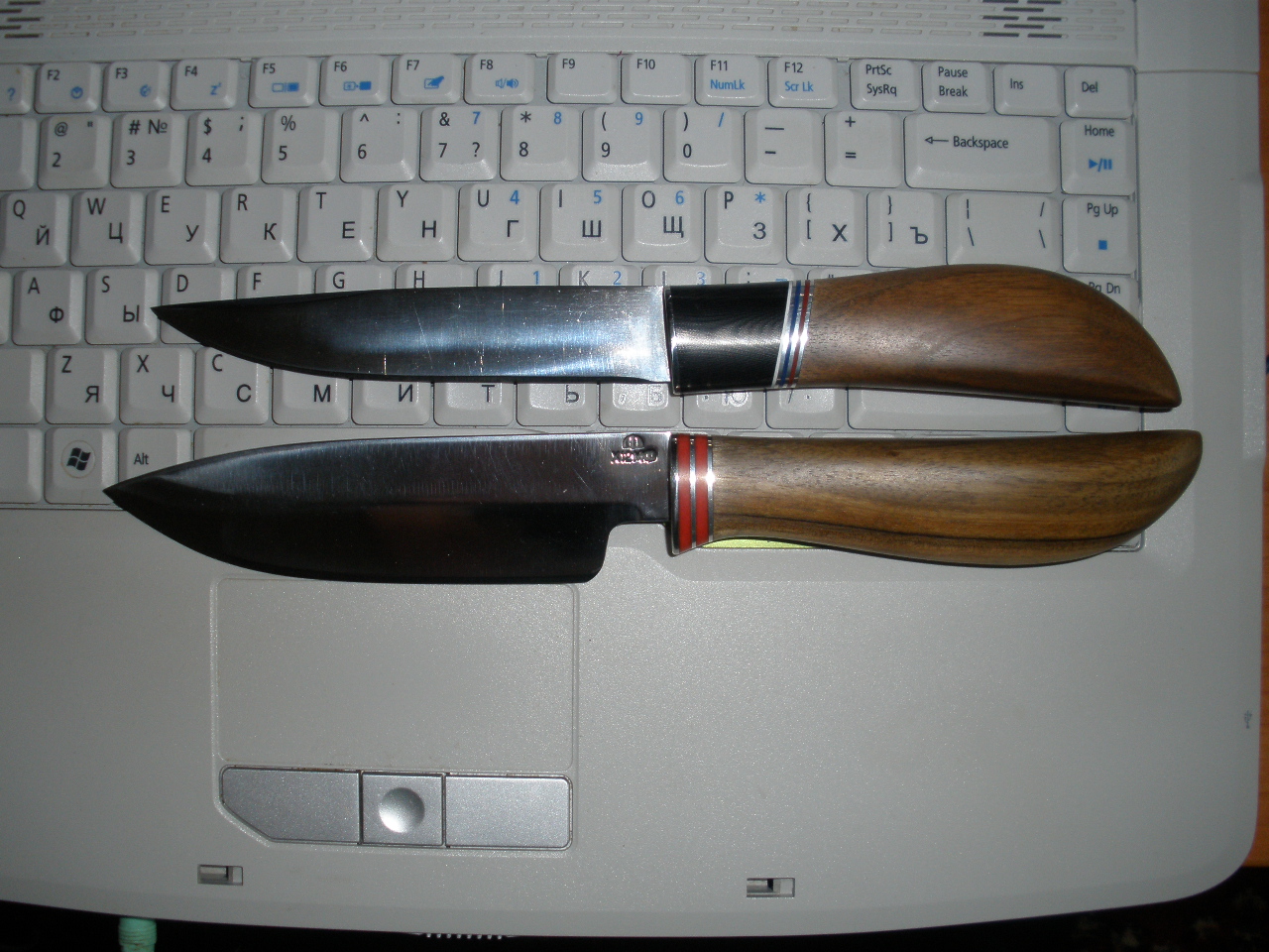 Приветствую камрадов. Решился показать вам парочку ножей недавносделанных.Различия в них есть ,но главное что меня удивило - оба ножа удобны в руке.Даже не ожидал такого.Сделал сначала кухонник,показываю жене ,она говорит ,вроде нормально ,но если перевернуть рукоять наоборот,то лучше в руке.Ну, спорить не стал,сделал маленького якута ,но с учётом пожелания,и как оказалось оба ножа были с радостью приняты хозяйкой кухни.Размеры здесь не самое важное .Если вдруг кому-то станет сильно интересно -расскажу.Вот такая story.А теперь масса фот.