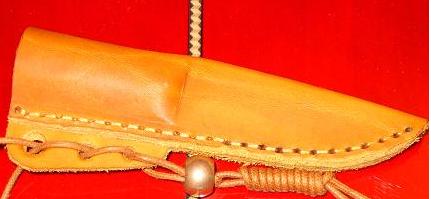 Тока у меня вместо одного уха - кнопка как на кошельках. Шоб горловину сузить и нож не потерять.