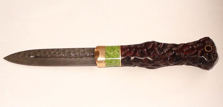 Мне очень понравился ваш "доисторический" малыш. Смотрелся очень стильно, как и другие работы. Но сейчас мне кажется, вы увлеклись данным способом подготовки клинков. Не надо превращаться в мастера одного приёма. Порадуйте нас работами в другом стиле. С уважением, Вячеслав.