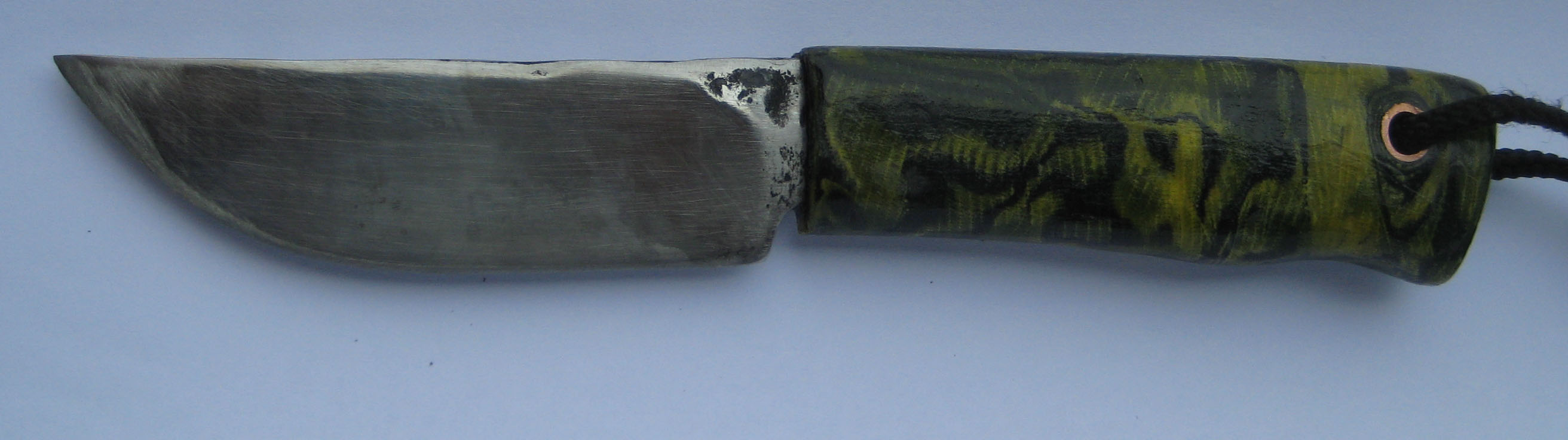 Слегка послесарил, рукоять типа текстолит (эпокси и тонкая синтетическая лента(двух цветов) намотанная на хвостовик).