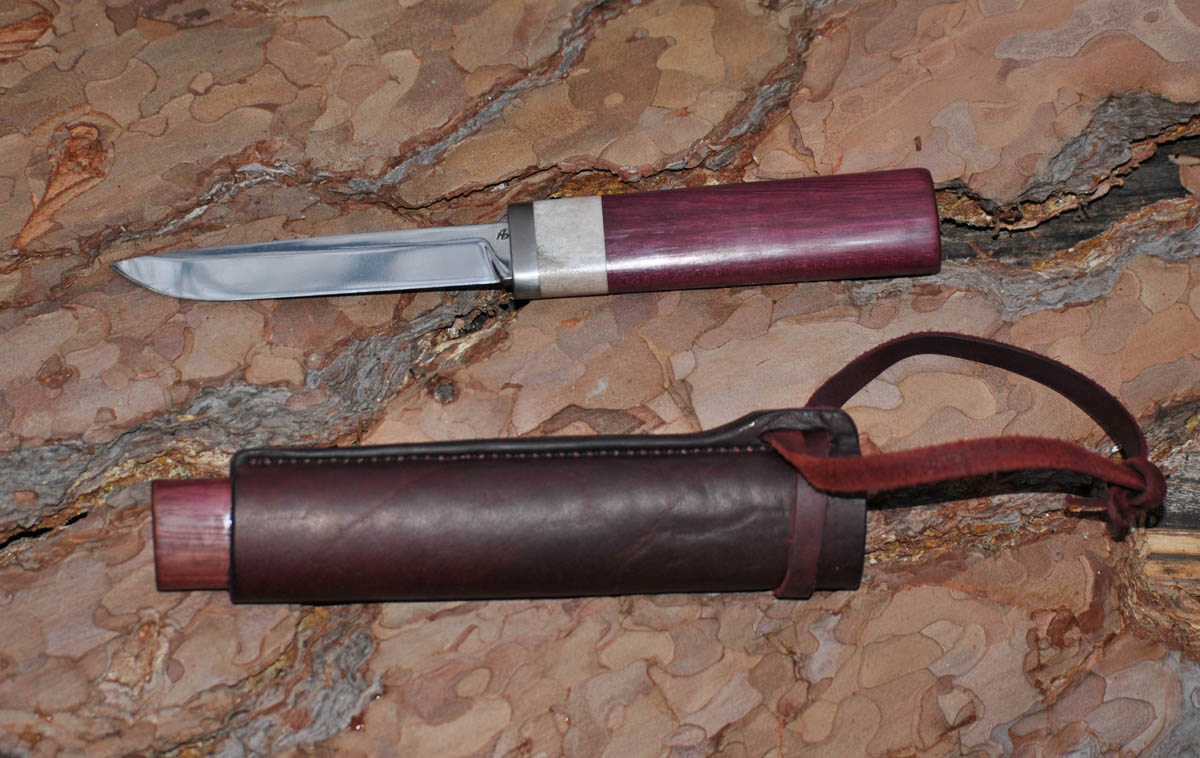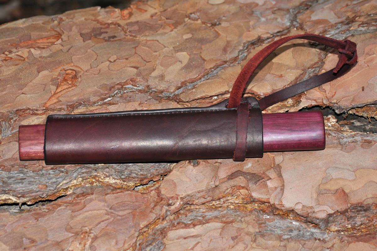 Ножны - вороток, крашены Сапфиром, пропитаны обувным воском. Темноваты от большого количества воска, цвет был один в один как у амаранта. Немного посветлеют со временем, как пропитка разойдется.