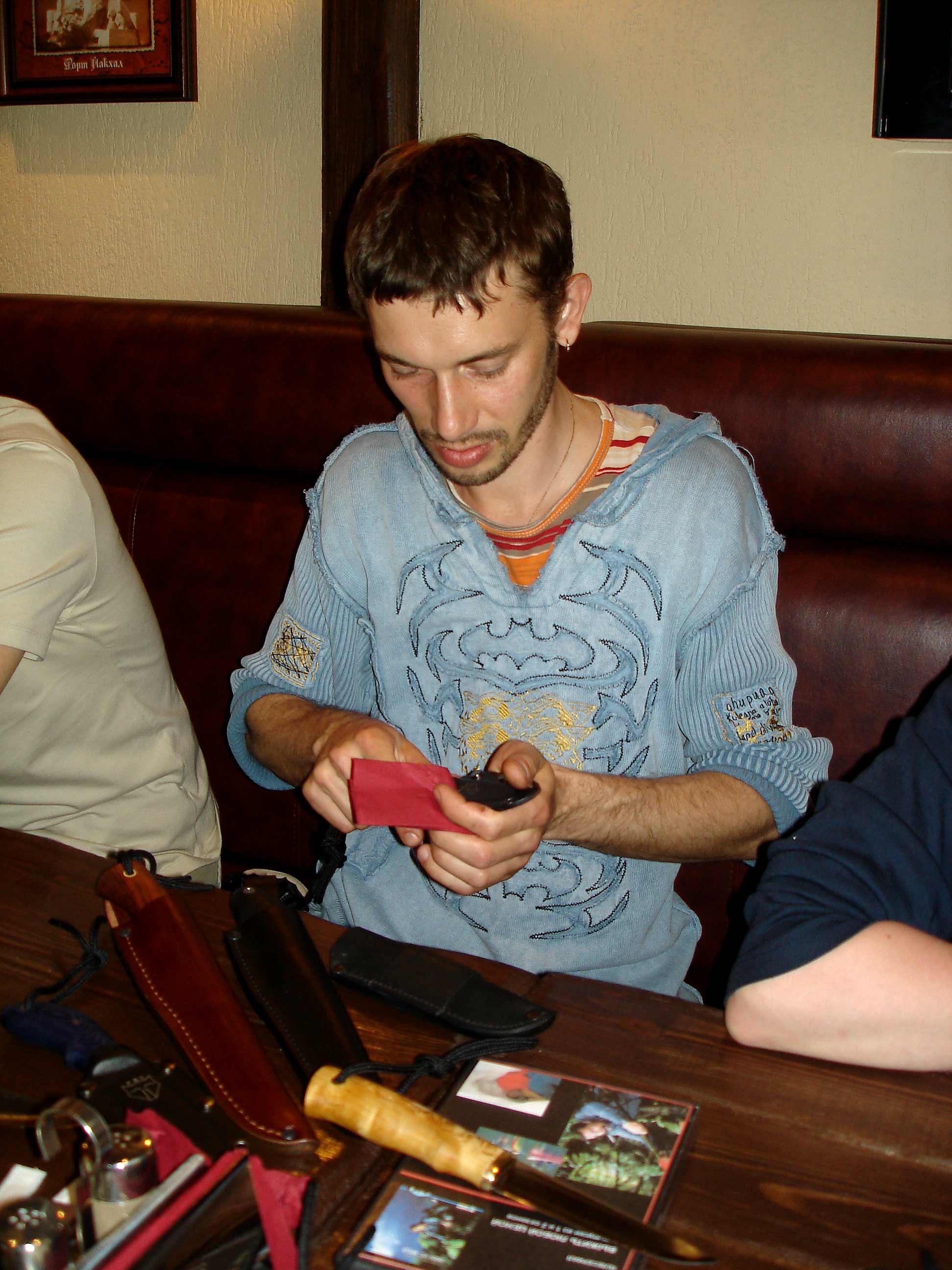 Кроме того, что ребята сами по себе приятные люди, и общение с ними доставило огромное удовольствие, они еще принесли образцы своих ножей. Просто нектарный бальзам на истерзанную жабой душу настоящего ножевого маньяка!