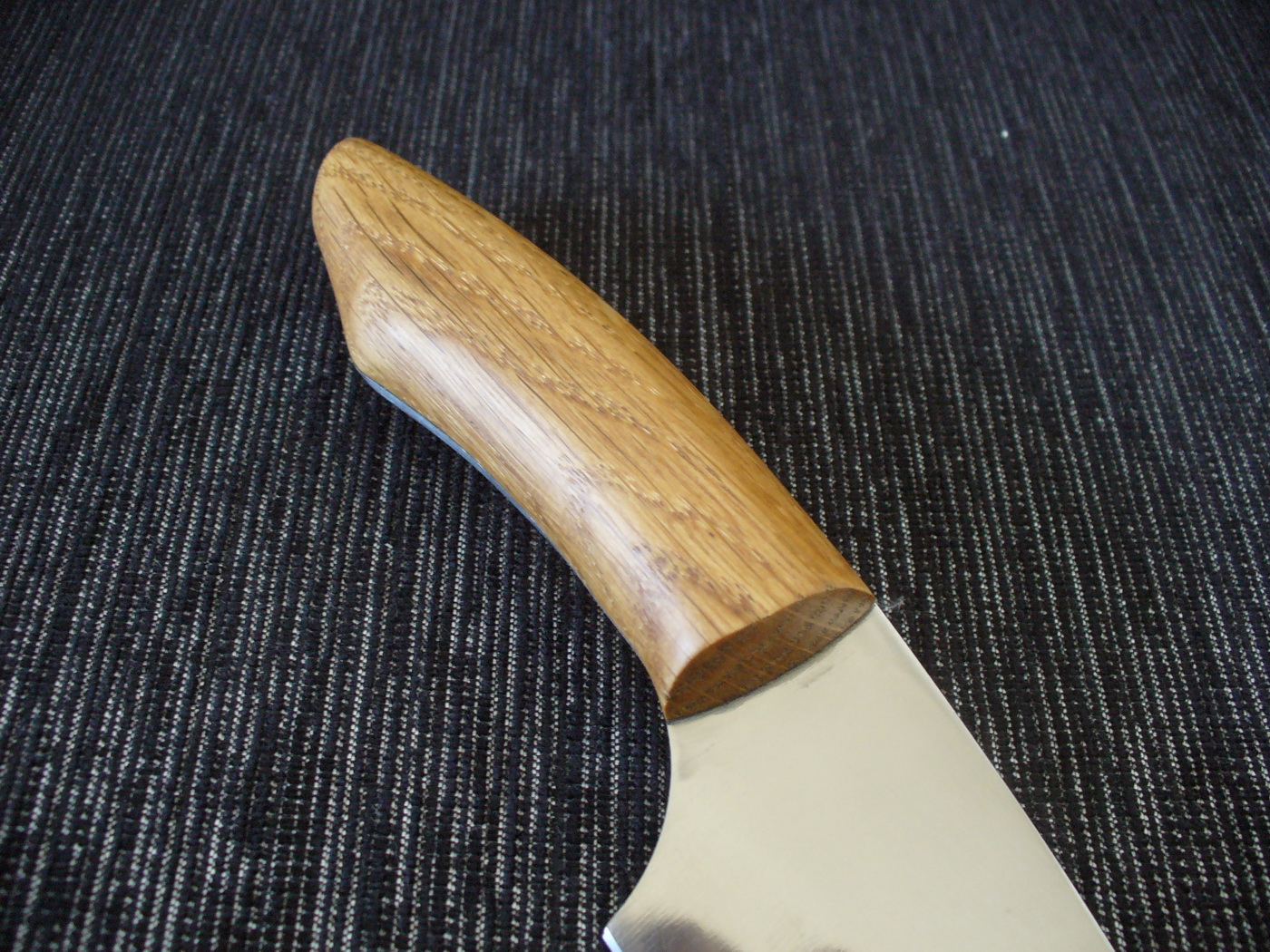 Учитывая все палки которые полетели в меня из за неровного расположения заклёпок на ручке малого скинерка, решил переделать ручку. Посмотрев как дед Димон переделал ручку на моём (тичбурновском) наже и распросив его (д.Д.) про технологию, переделал. Теперь накладки из дуба. Пропитано пчелиным воском на водяной бане. Конечно получилось не так шикарно как у деда, но намного лучше чем было...