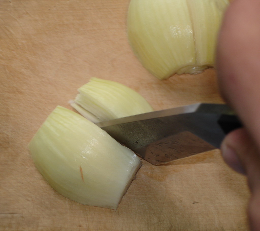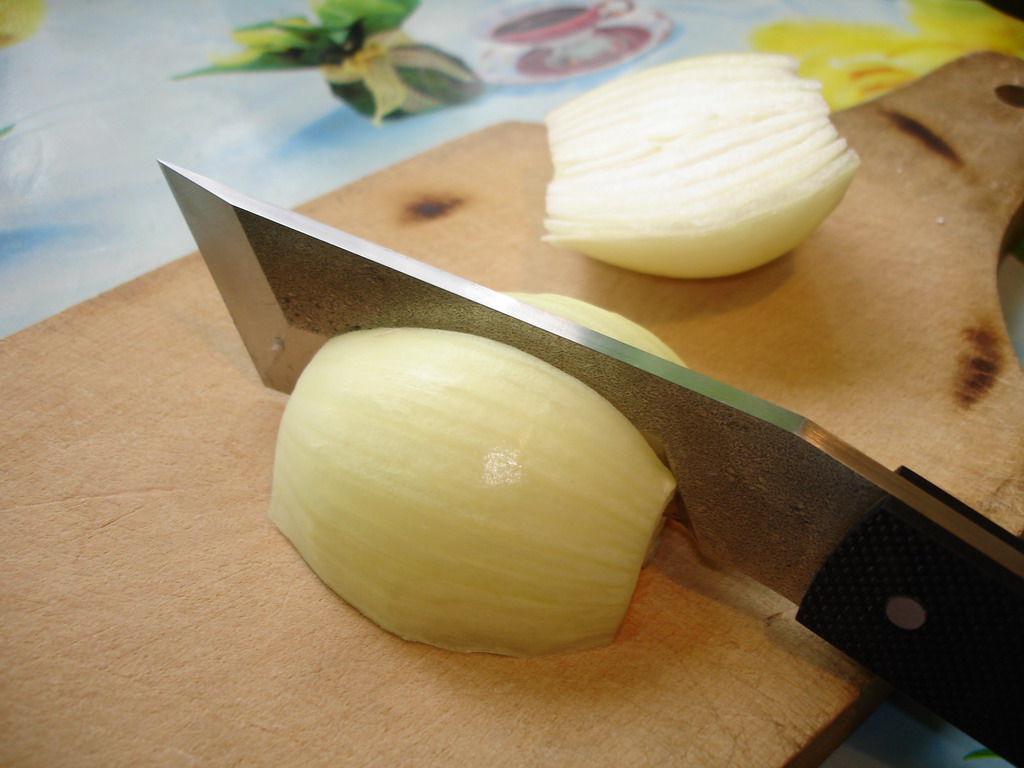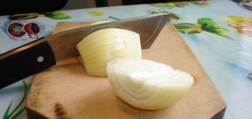 Порезал им мягкий батон,в батон просто проваливается,ощущения что режешь нет вообще :shock: попробовал отрезать кусочек потоньше,не получилось из за недостаточной длинны клинка.И мой любимый тест на геометрию,репчатый лук.Режет не раскалывая,но к резу нужно приспособится,с непривычки нож уводит.И лимона дома не оказалось,лайм,чуть подсохший.Режет тонкими ломтиками,но нужно изловчится для выбора грани которой резать,к слову форумный Грип с лаймом справлялся значительно хуже.