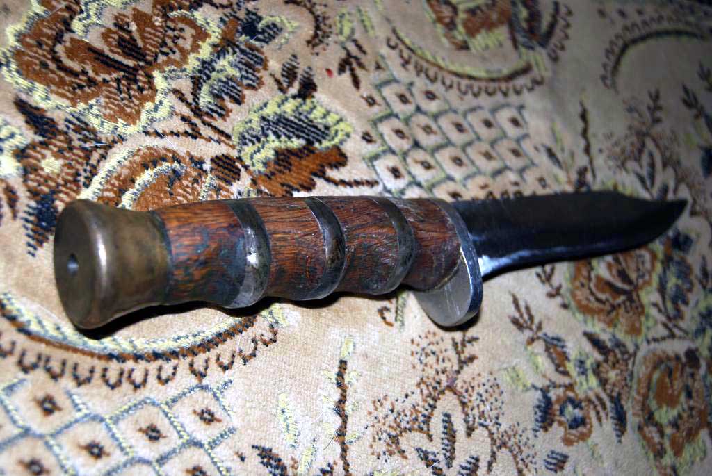 Ножег был сделан еще в СССР, совсем в то время юным учащимся ПТУ. Сделан был на заводе. Делал его этот парень "под себя". Сейчас сей предмет решает все "тактические" задачи на кухне автора, где я его нашел в довольно острозаточенном (как только это возможно для 3Х13 :D ) состоянии.