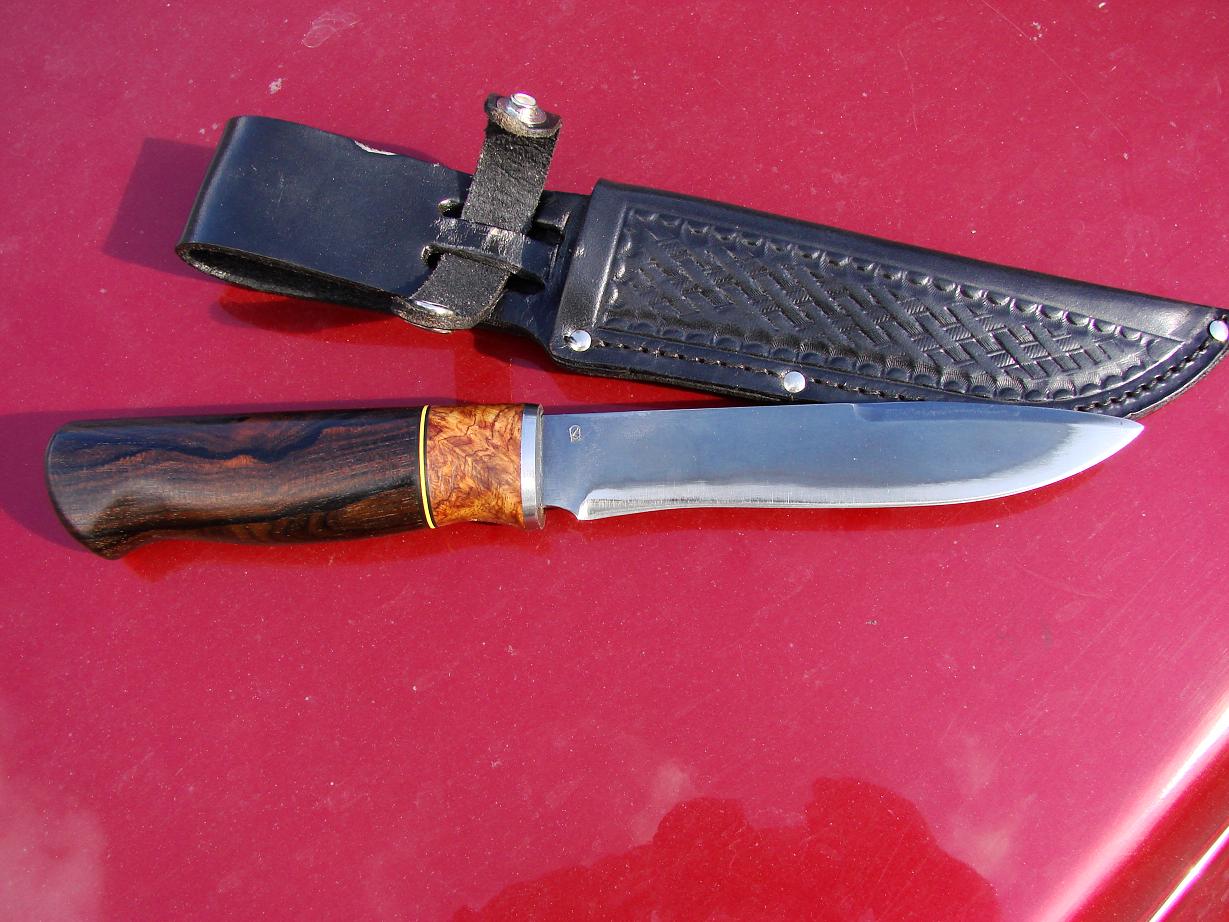 Привет Всем!Попал ко мне нож с всадным монтажом,разобрался очень легко,деревяхи не испортил можно использовать еще это из за отсутствия насечки на хвосте и слишком эластичный клей.Больстер прослаблен в двух плоскостях,при работе должен был разболтаться.На клинке отсутствуют спуски,должен был не резать а ломать.Про удобство рукояти на любителя,мне не удобна.Ножны не подогнаны к клинку,рисунок кривой.Сталь клинка обозначенная как CPM S90V показалась не такойуж и супер :wink:95х18 царапала без ущерба для клинка,ШХ15 оставила ощутимый след,40х13 оставила равноценный